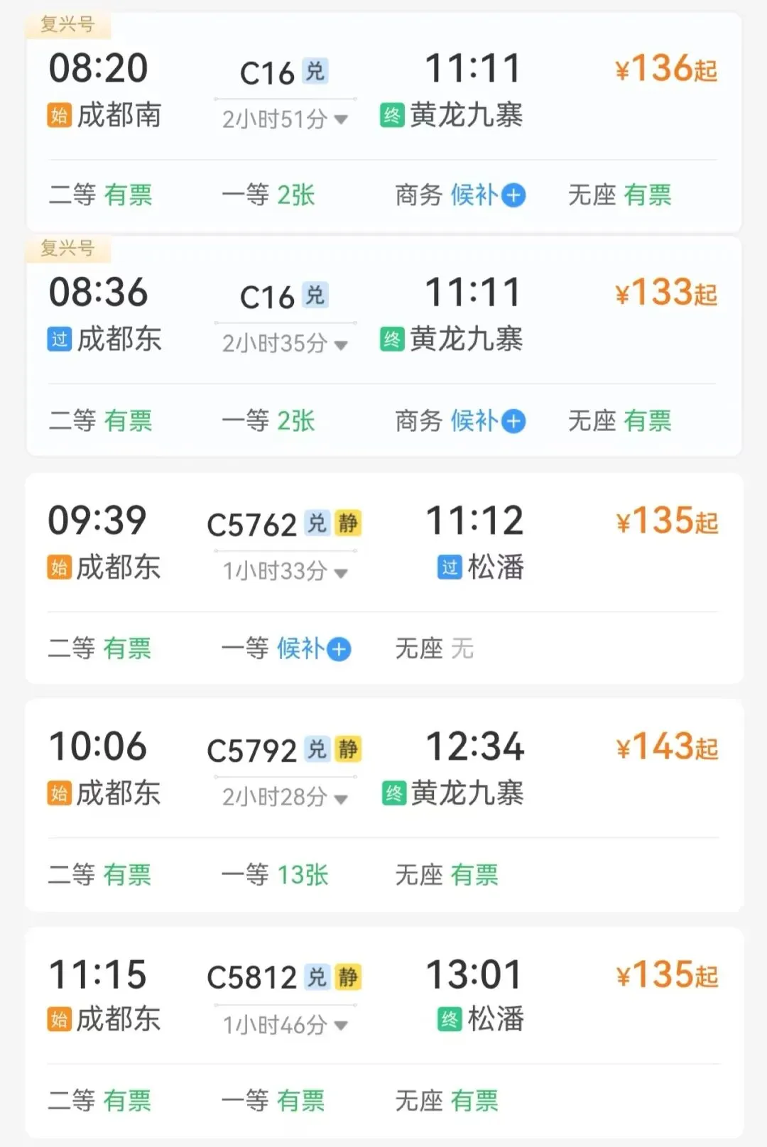 成都东—黄龙九寨站日均开行列车13趟
