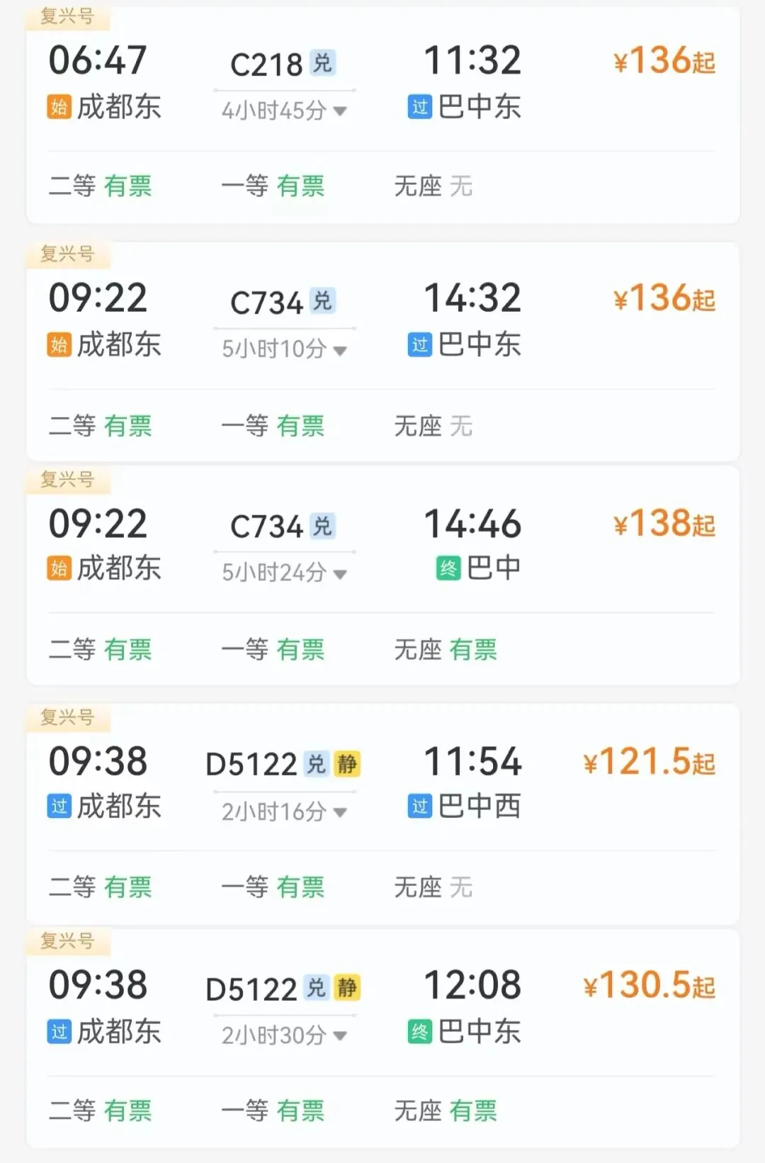 成都东站—巴中东站日均开行列车10趟