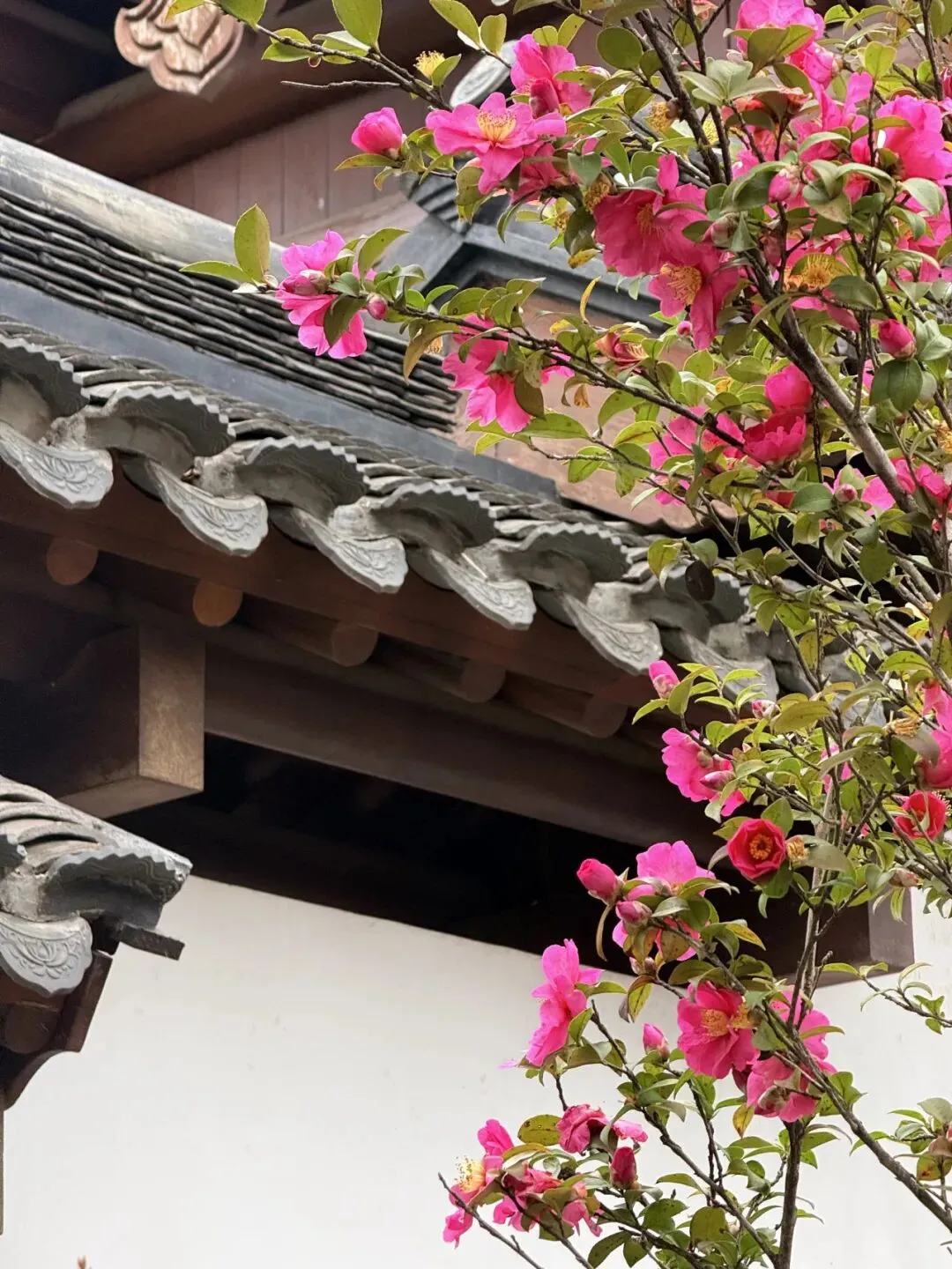 苏州园:梅影横斜映青瓦,山茶烂漫暗香浮。小猫轻嗅的,是姑苏的旧时光。