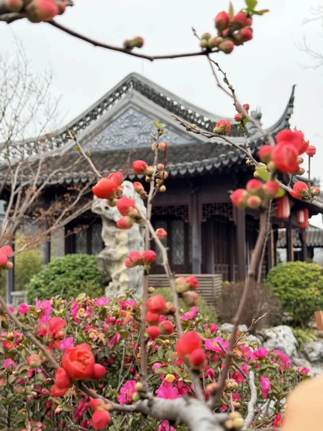 无锡园:结香含韵,梅影传春。在“梦花”枝头系结,许下春日心愿。