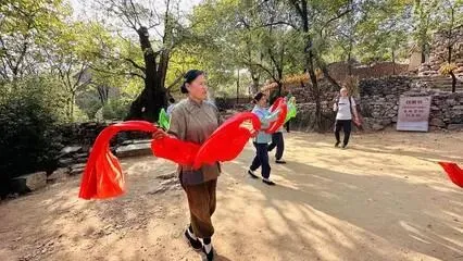 “跟着团长打县城”升级版“重走支前路”,沉浸式抗战体验餐红色旅游新玩法:中国人自己的剧本杀《重走支前路》!跟着冲锋号往前冲,超级有体验感,同时被网友称为“最适合中国人的cosplay”冲进去以后在城里庆祝,有表演可以看。这“打县城”的项目,在沂南县的红嫂家乡旅游区,拍过不少红色电剧。他们把《亮剑》这些抗战剧的场景还原出来,游客穿上军装,拿着道具武器,跟着“团长”模拟冲锋陷阵,体验当年的峥嵘岁月想象一下,你站在一片宽阔的战场上,手中紧握着道具大刀,眼前是模拟的“平安县城”随着一声令下,你和周围的“战友”们一起冲向城门,炮火连天,硝烟弥漫。大家一起冲锋,那场面,真是让人热血沸腾。