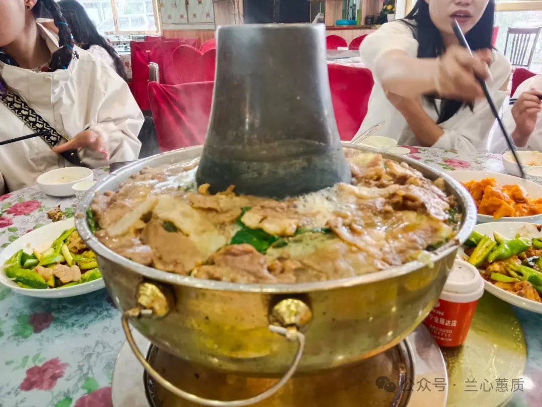 德令哈去往青海湖的路上,我们吃了西宁的特色牦牛铜锅,满满的牦牛肉,大家吃的津津有味,我只选择性的吃了素菜,有点高反胃很不舒服,不过饭店的牦牛奶粉还是挺好喝的,其他人评价牦牛肉很嫩,很好吃。