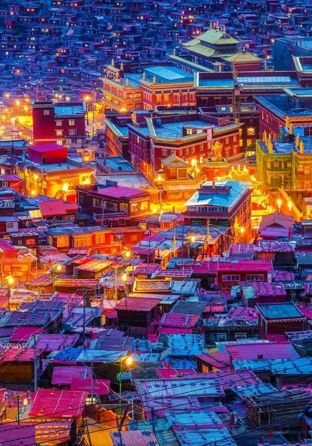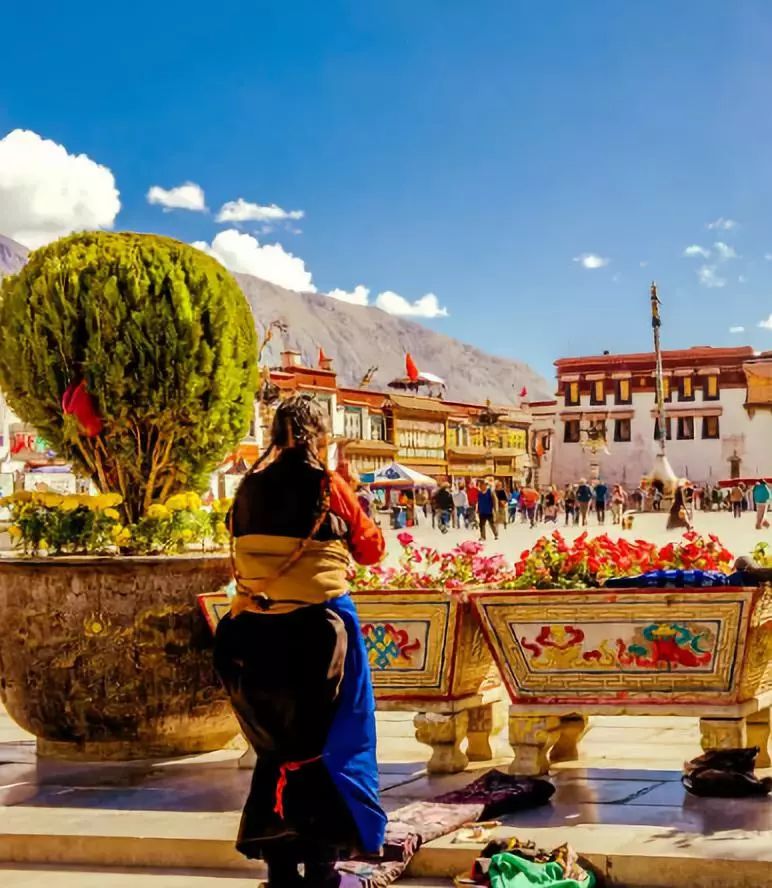 身披桨红色僧袍的喇嘛和尼姑来来往往