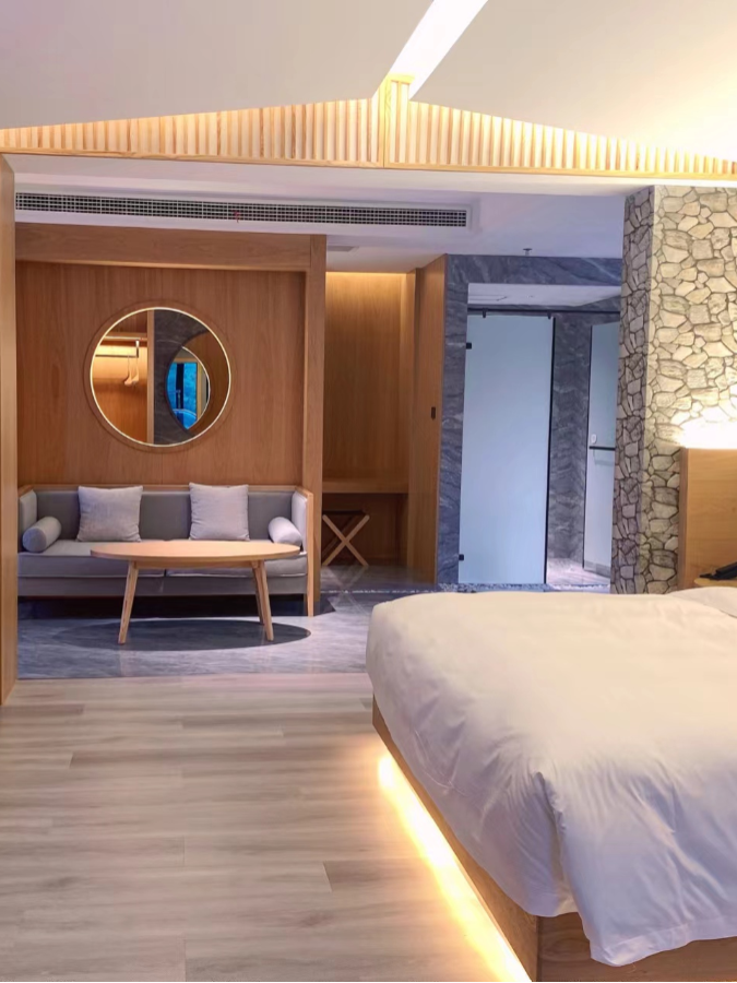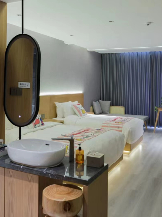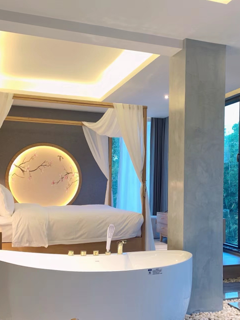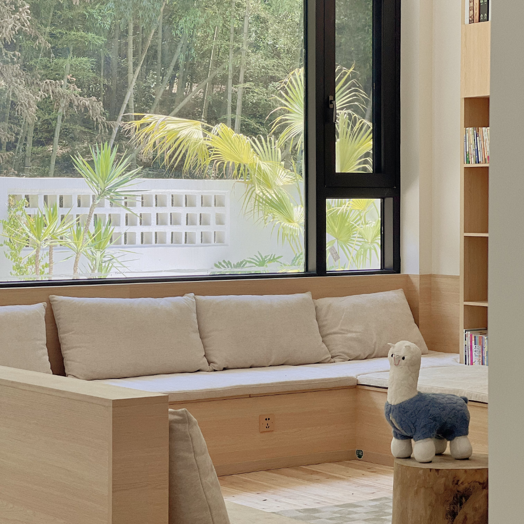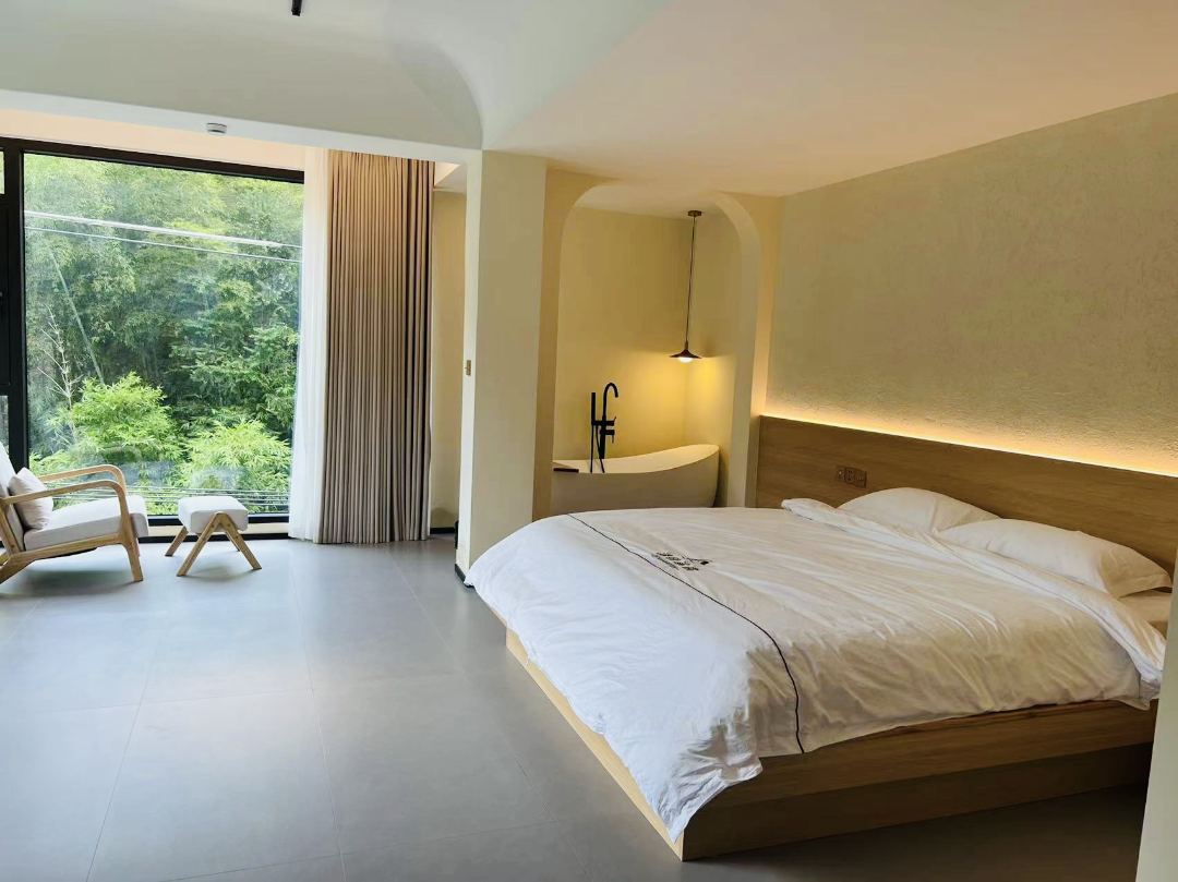 民宿内房间为套房设计,窗外是群山环绕。房间内配备了各种日常用品,舒适惬意。日式榻榻米、欧美工业风、Ins风、漫威儿童房等风格各异。