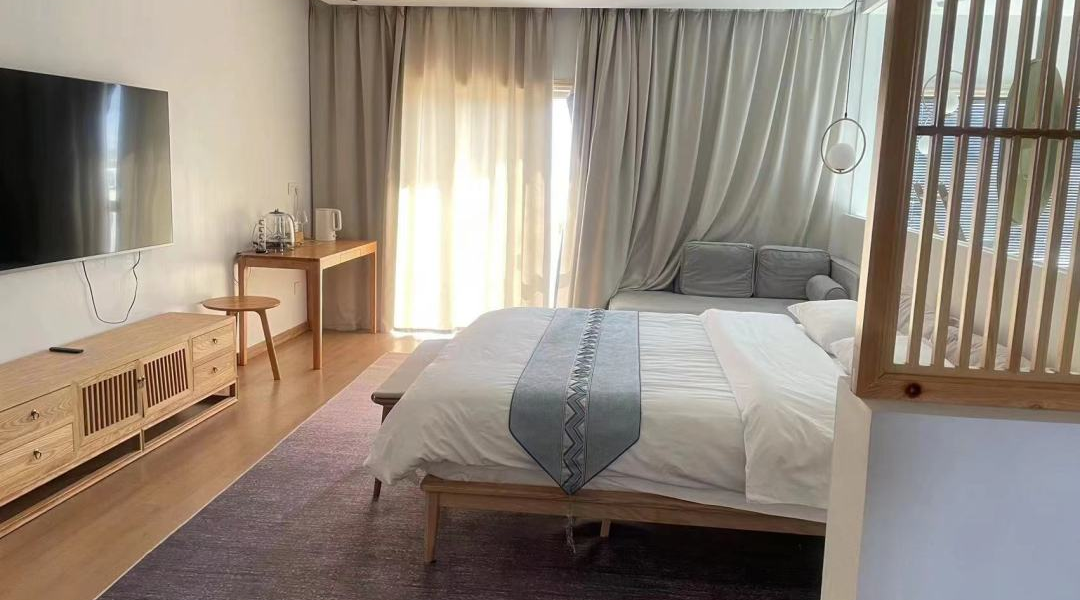 民宿内设亲子房4个、套房1个、高级大床房6个、大床房4个,共15个房间,可提供20张床位。