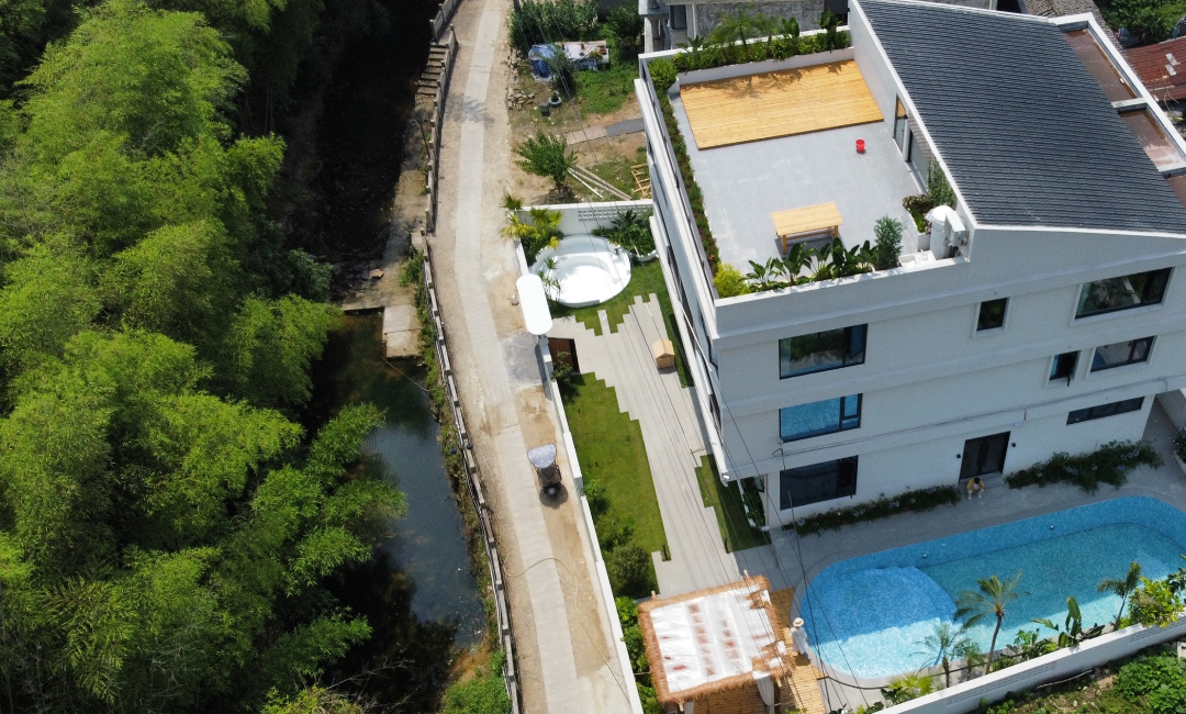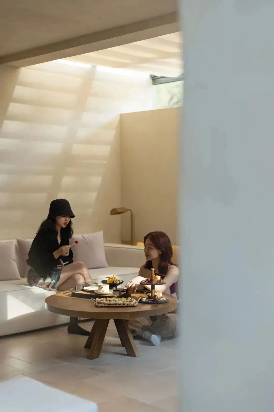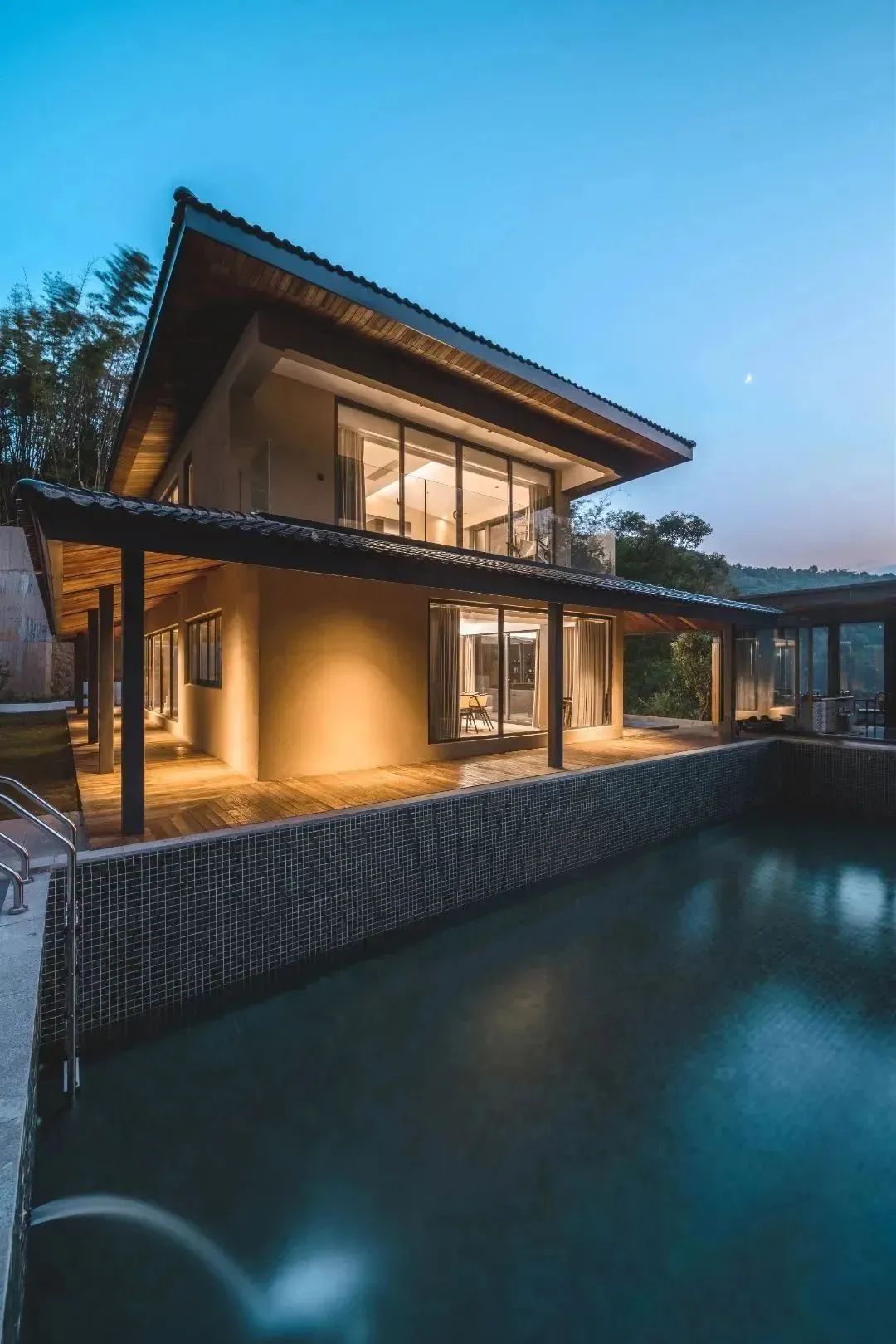 3栋小青瓦石墙,10间客房,沿着竹径抵达。向外舒展的屋顶气势磅礴,恰到好处地与空旷山野为伴。居住者既可在泳池中畅游,感受阳光的温度、水流的动感、身体的跃动,也可躺卧在沙发上,望远方的景、听近处的心、思人生的过往,怡然自得。