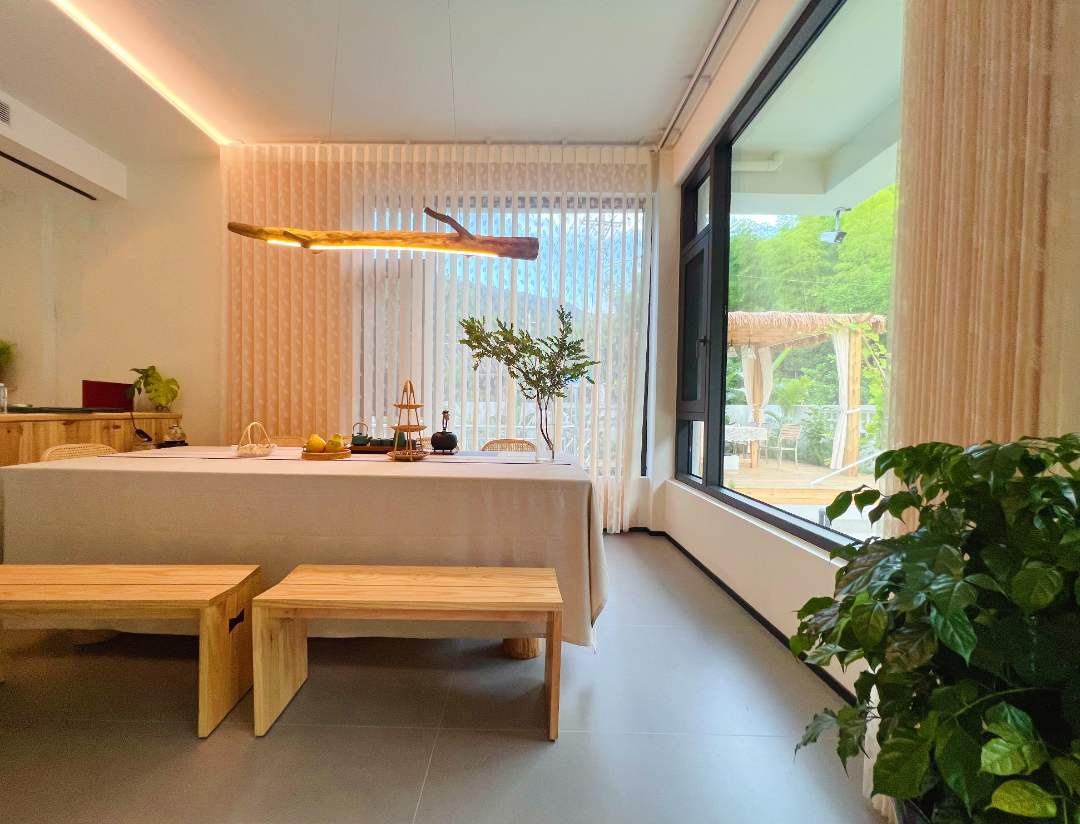 民宿内设独立厨房餐厅,让您尽享家常美食;下沉式书吧提供静谧的读书空间;K歌台、茶台等娱乐设施一应俱全,满足您不同的休闲需求。一线山景大露台更是民宿的亮点,尽揽群山壮美,让您身心愉悦。