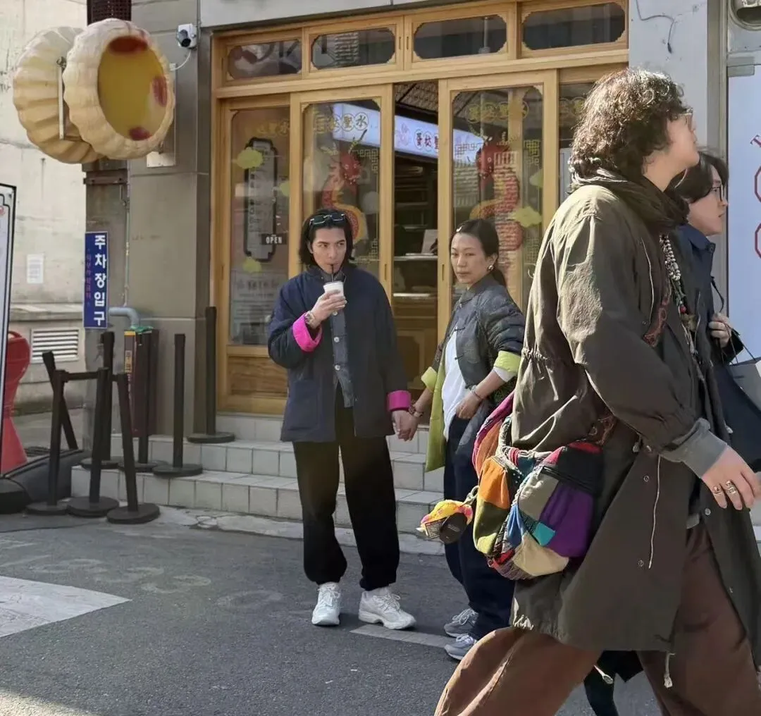 萧敬腾和老婆一起韩国旅游被偶遇,新中式情侣穿搭时髦又显年轻,两人互动甜度爆表!