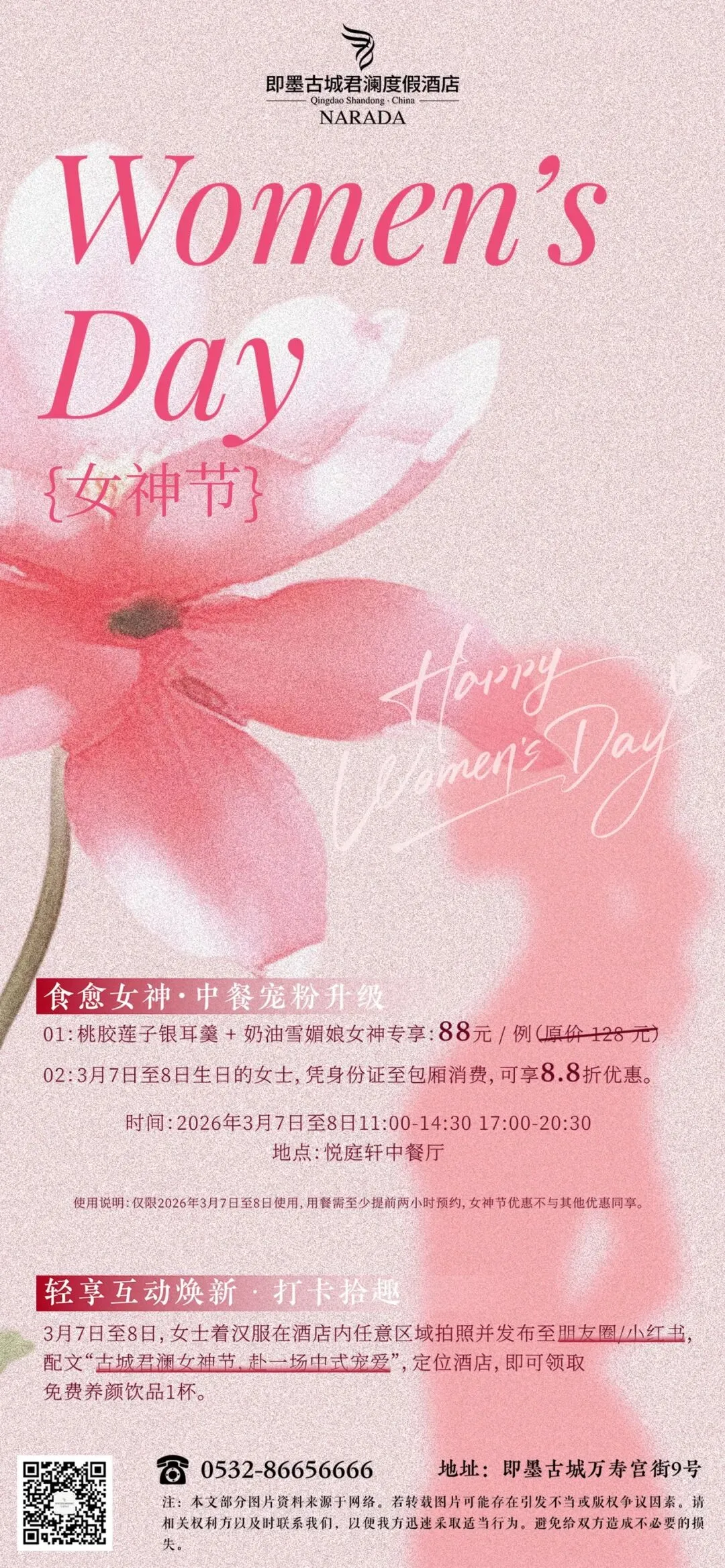 春风漫过青砖黛瓦,草木抽芽,繁花缀巷,三月温柔如约而来。恰逢三八女神节,春光与芳华撞个满怀,愿你不负时光、不负美丽,来即墨古县衙景区共赴一场浪漫之约~