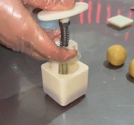 将圆柱面团放入相应的饼模具中并按压