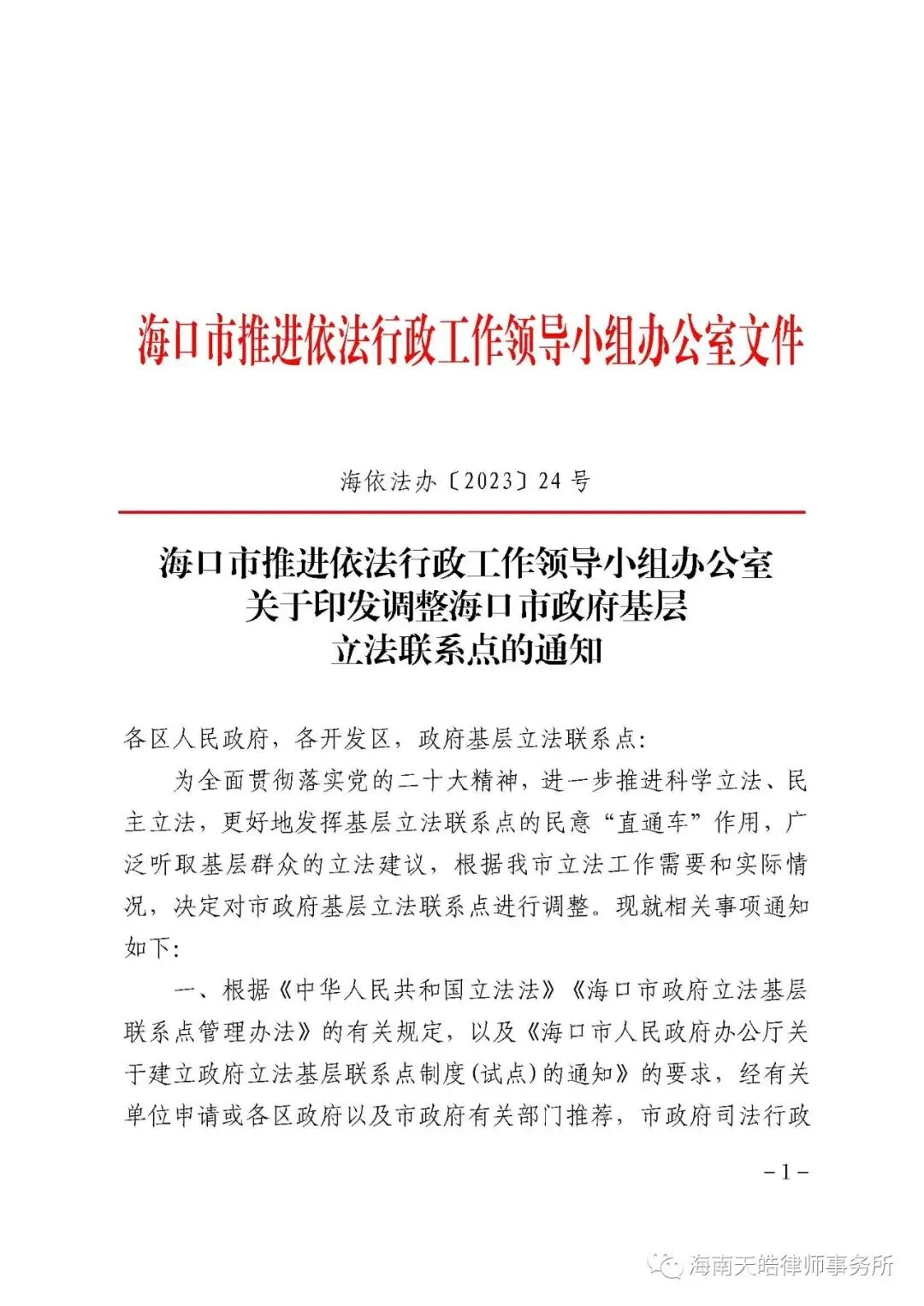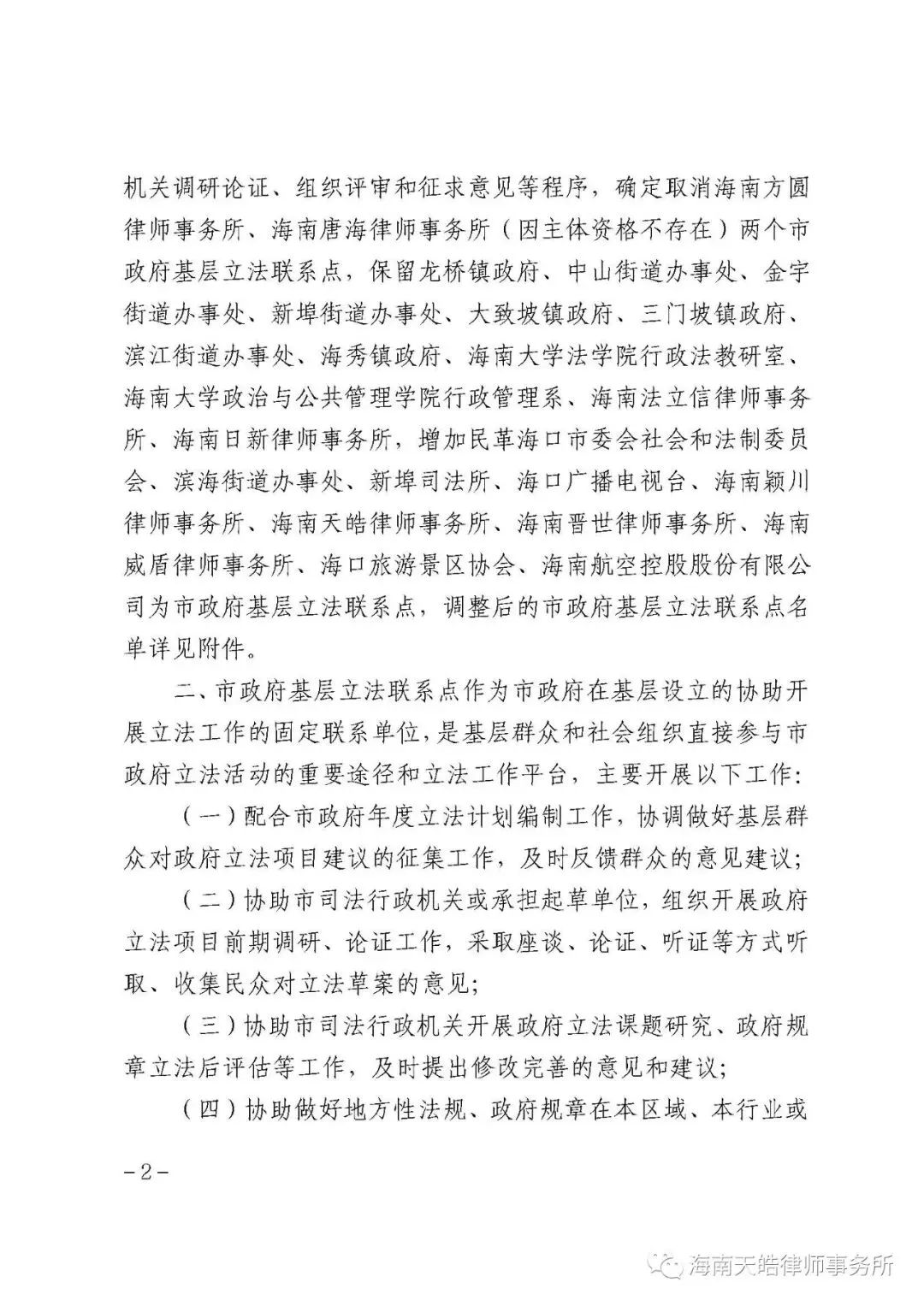 为全面贯彻落实党的二十大精神,进一步推进科学立法、民主立法,更好地发挥基层立法联系点的民意“直通车”作用,广泛听取基层群众的立法建议,根据海口立法工作需要和实际情况,海口市推进依法行政工作领导小组对市政府基层立法联系点进行了调整。海口旅游景区协会入选海口市政府基层立法联络点。