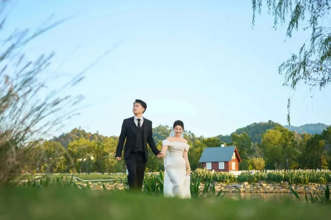 婚纱照:灵湖景区 草坪 小木屋 夕阳 小树林 太多出片的地方了·快收藏起来· 打卡,交作业