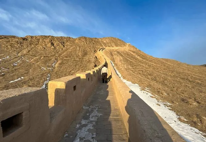 爬到最高处,能看到整个河西走廊的地形,戈壁、绿洲、雪山,一览无余,这时候你会明白,为什么古人要费这么大劲修长城,因为站在这个位置,你能清楚看到哪里能走人,哪里走不了,把能走人的地方一堵,整个防线就活了。