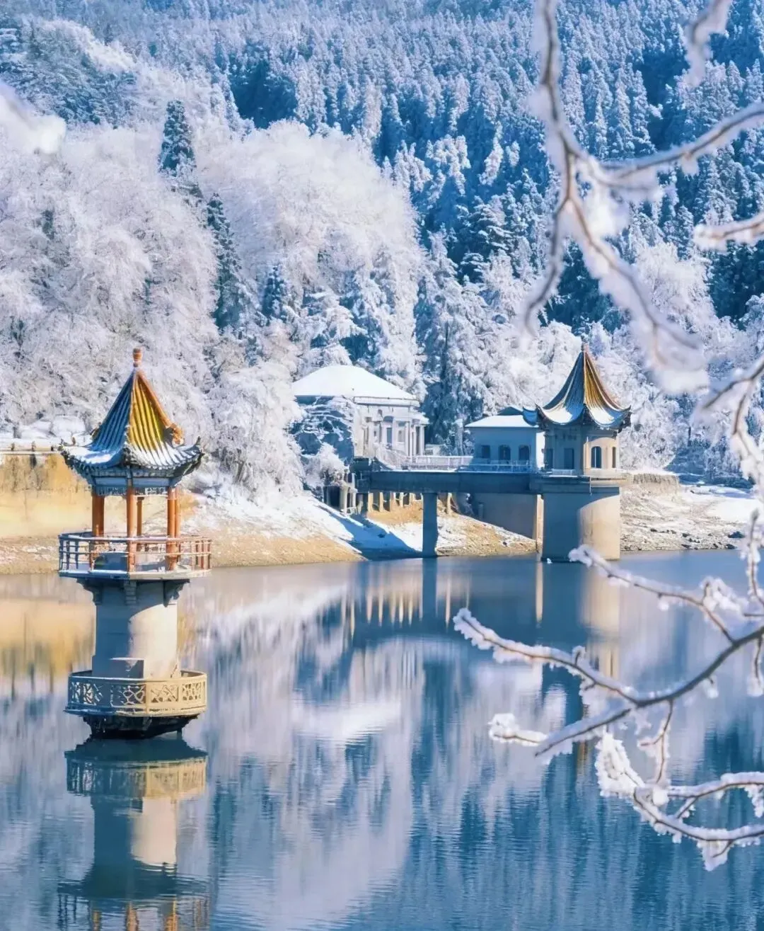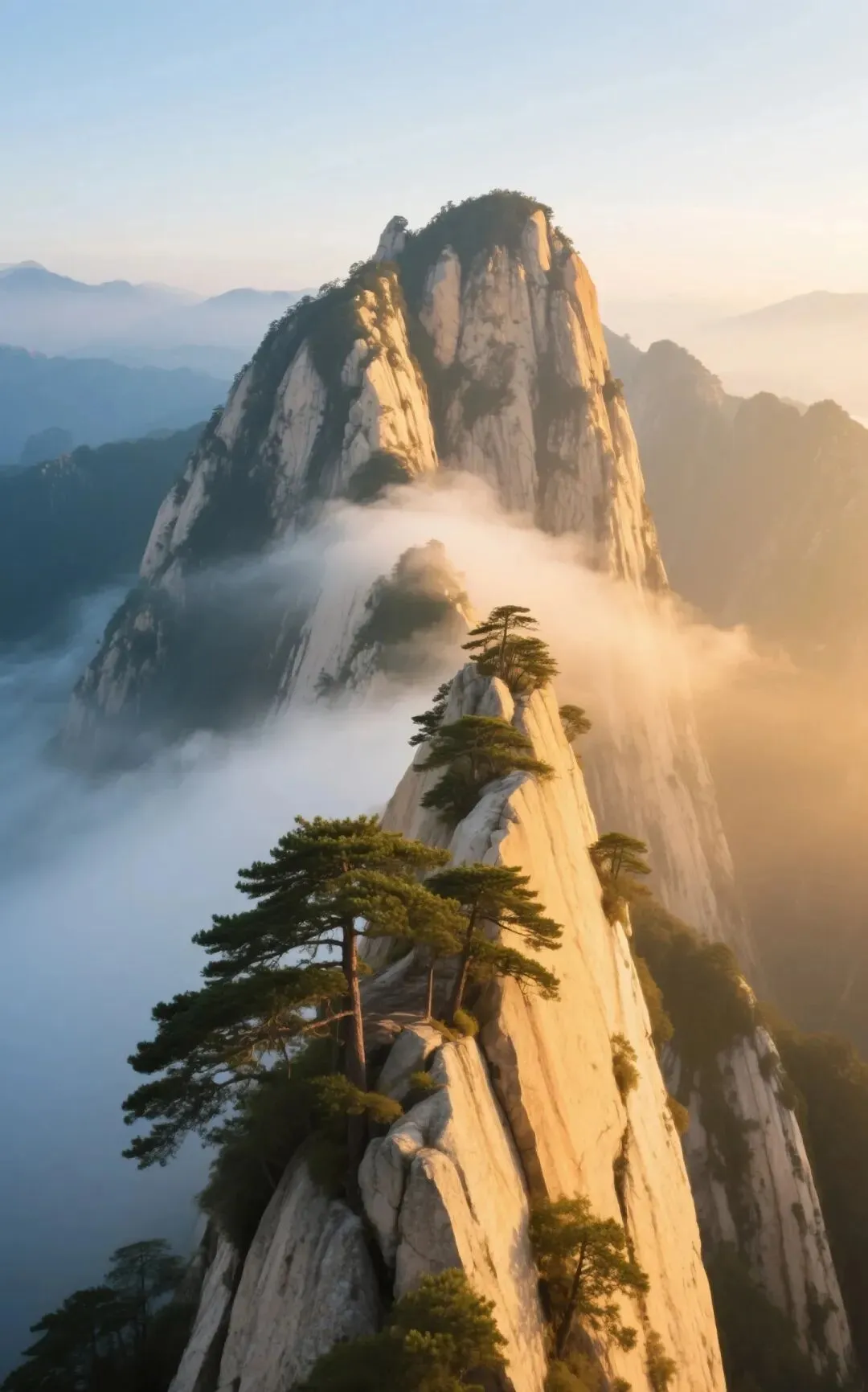 景色特色:华山奇险天下第一,太白山秦岭主峰,春日雪景与绿意交融。