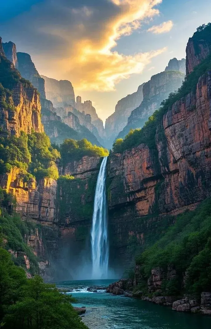 景色特色:太行山水精华,春日碧水如镜,两岸山花遍野,乘船游览如入山水画廊,峡谷幽深,瀑布成群,素有「北方三峡」美誉。