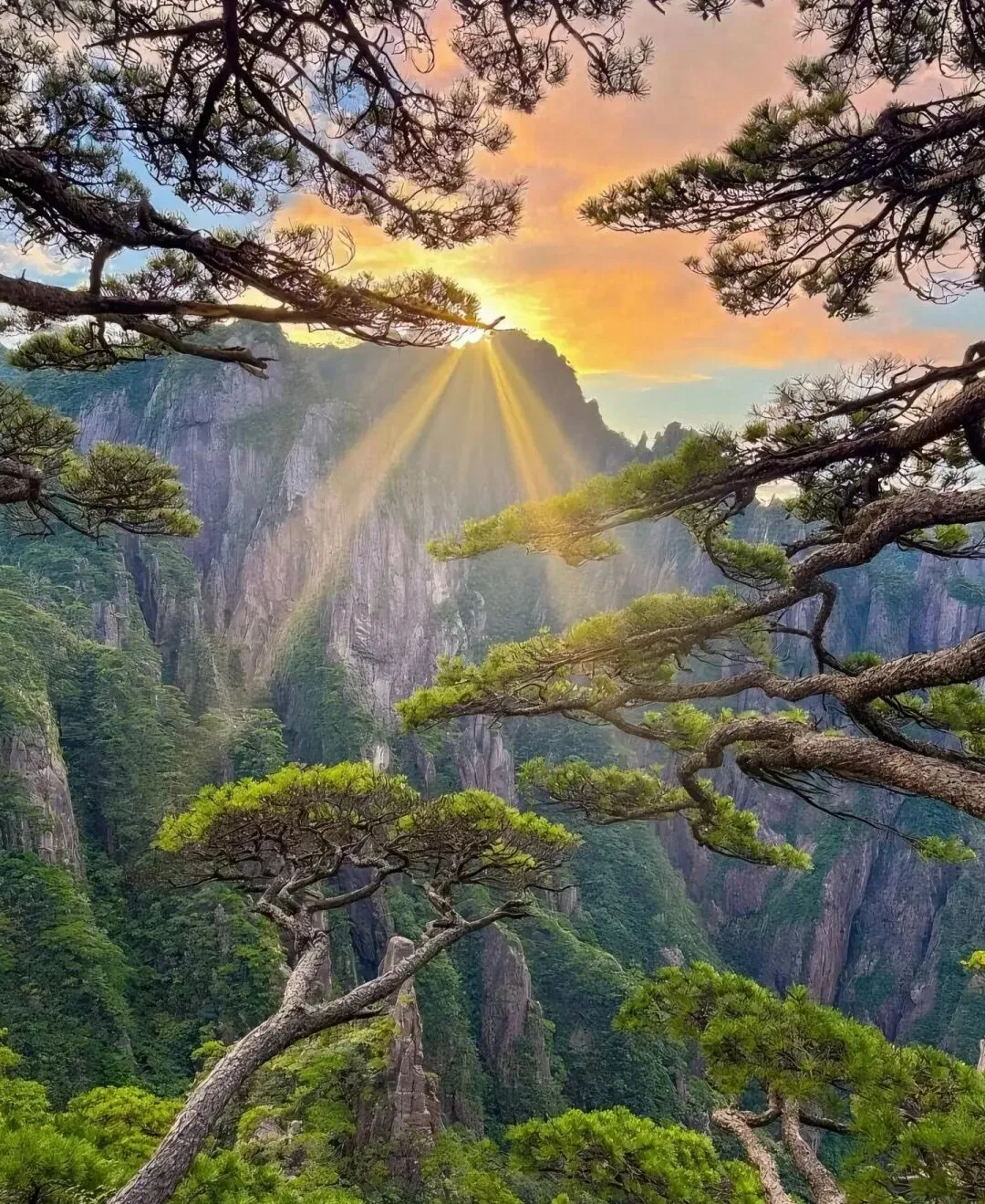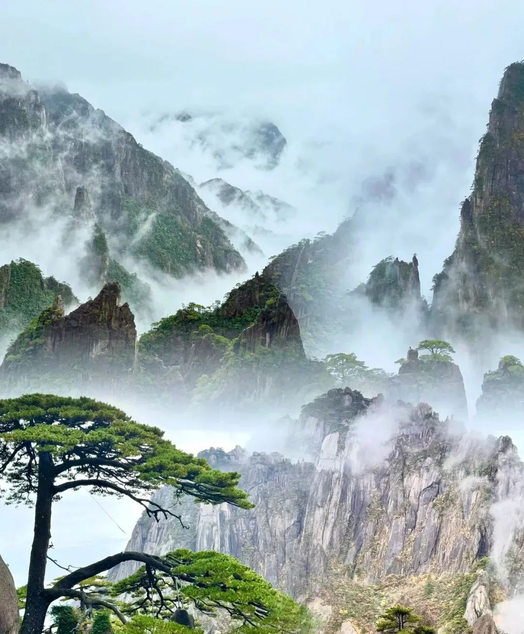 景色特色:天下第一奇山,奇松、怪石、云海、温泉、冬雪「五绝」闻名,春日黄山云雾缭绕,山花点缀,日出日落绝美。