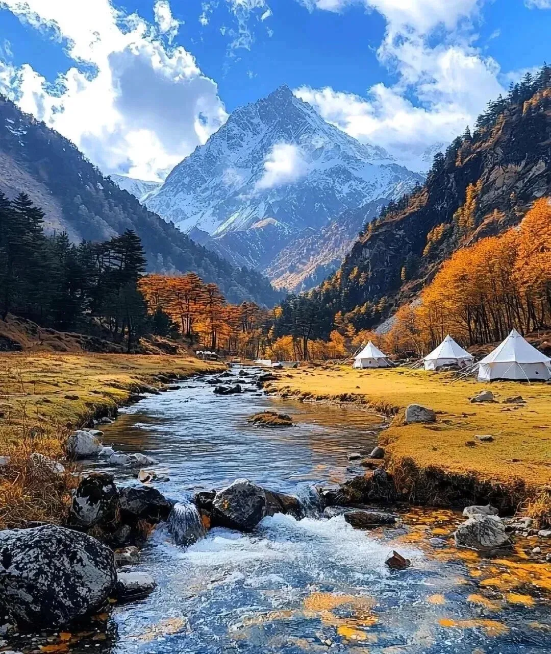 景色特色:九寨沟碧水彩林,春日冰雪消融,海子清澈见底;四姑娘山雪山巍峨,草甸返青,川西秘境颜值巅峰。