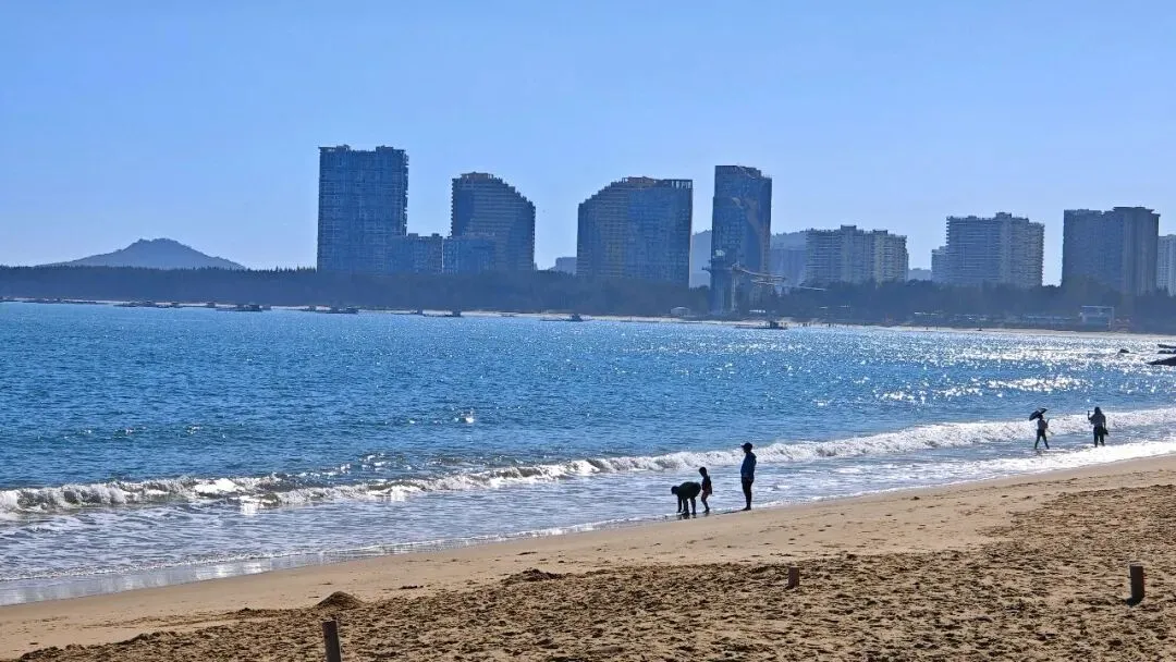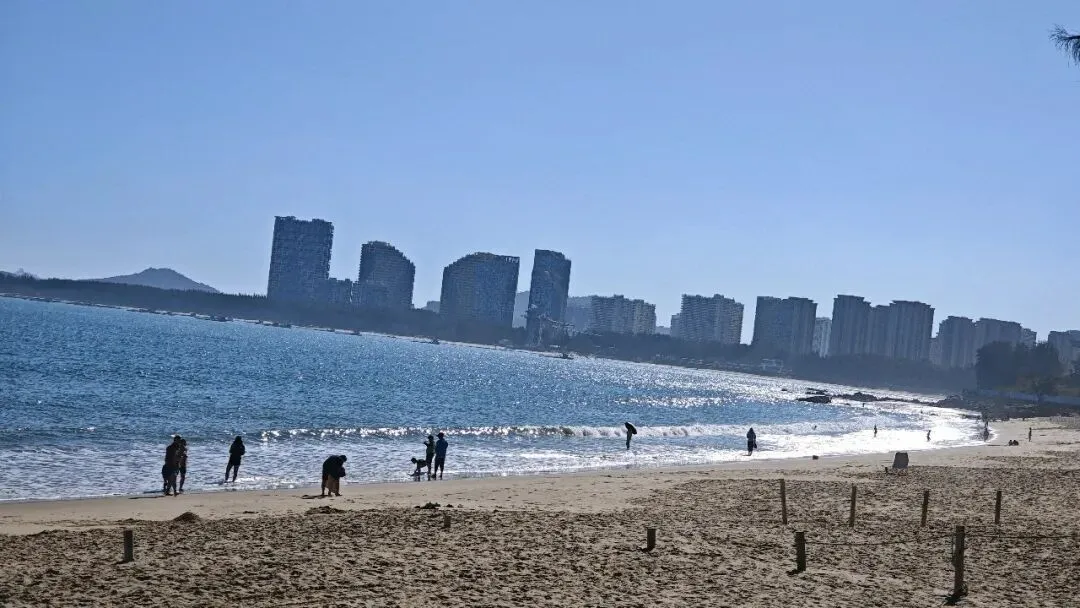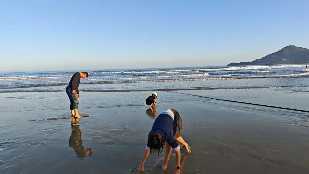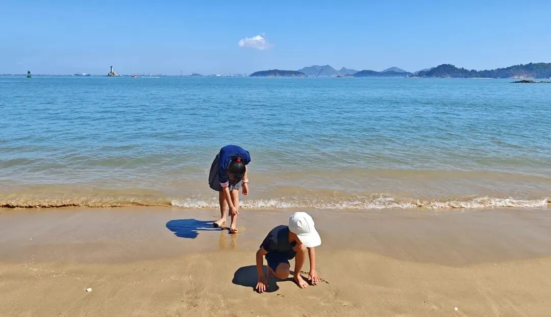 这里沙滩很干净,海水也很蓝,适合慢慢散步。也适合娃挖沙子,天气超级给力,唯一遗憾是没带防晒霜。娃也是穿着羽绒裤在28°海边挖沙子