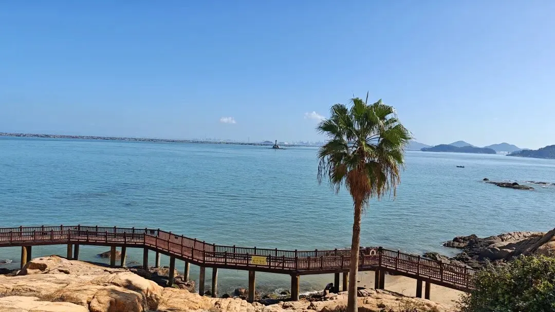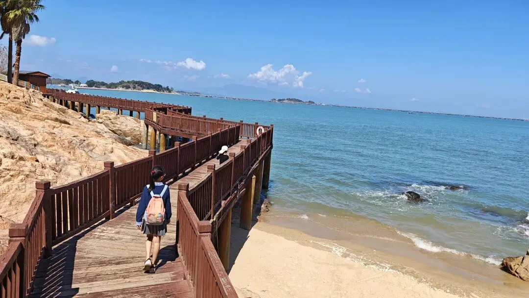 东山岛是被大海偏爱的宝藏地。此刻,没有暑假喧嚣热闹,海水蓝得澄澈透亮,仿佛把整个天空都揉进了海里。
