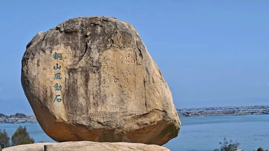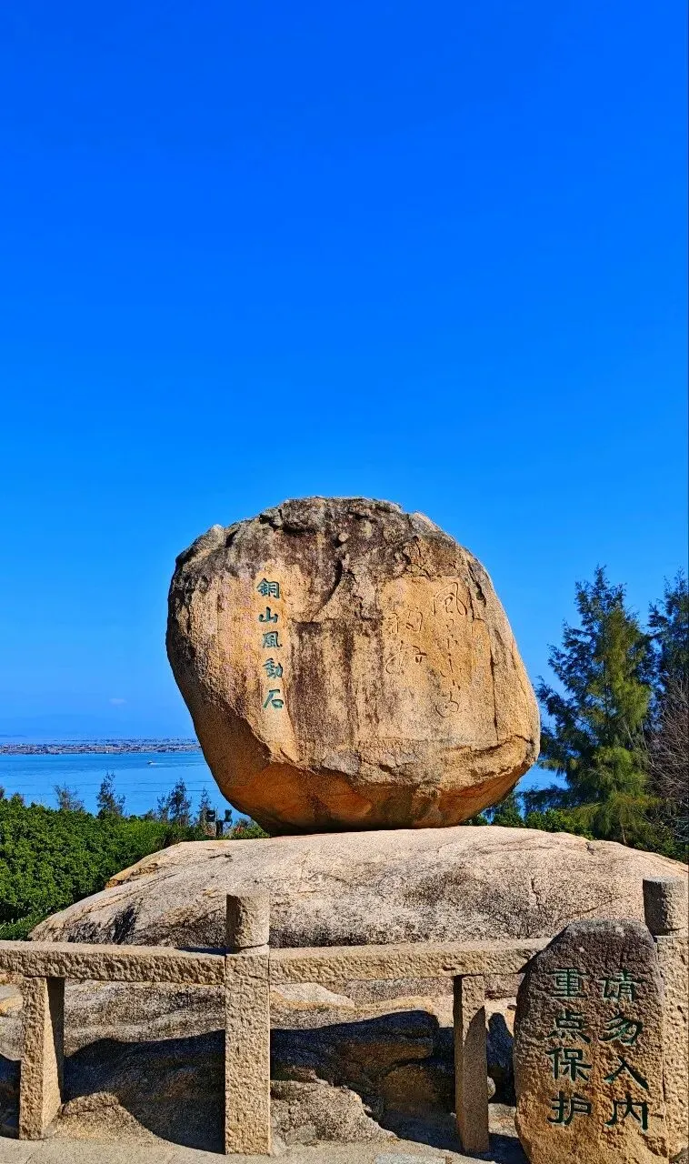 风动石自古闻名,早在明代张岱的《夜航船·荒唐部》里就有记载:“漳州鹤鸣山上,有石高五丈,围一十八丈,天生大盘石阁之,风来则动,名风动石。”