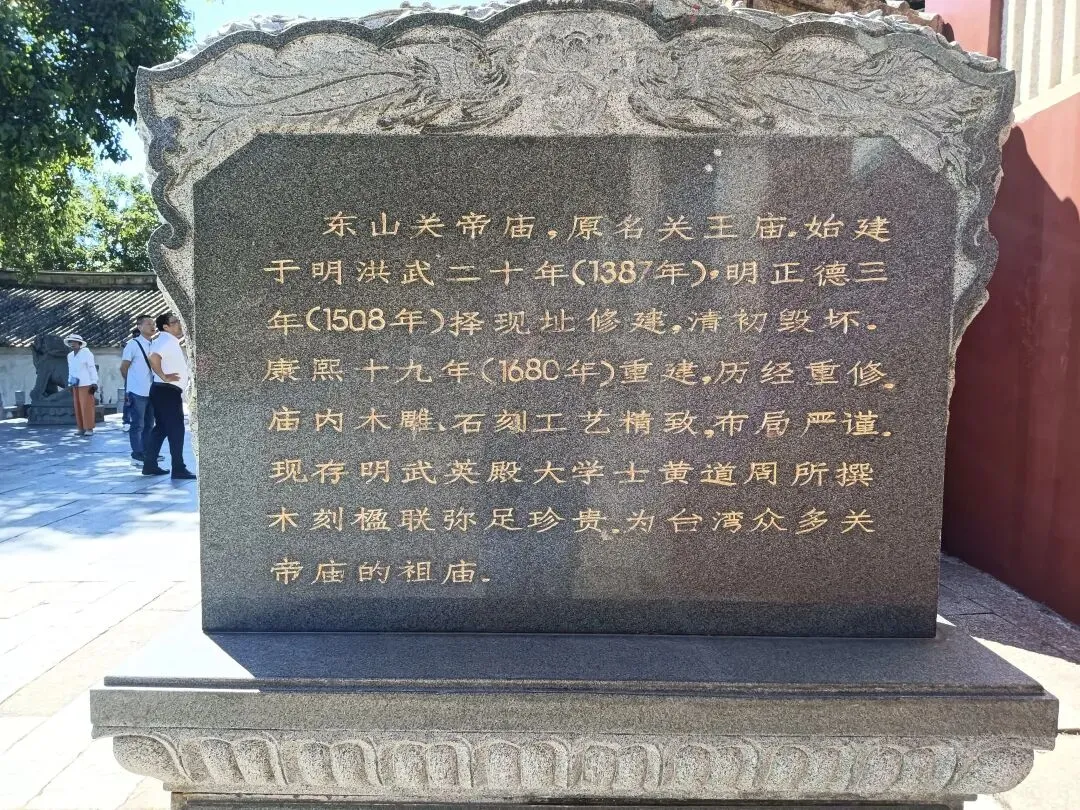 东山关帝庙是景区一大看点。历史悠久,底蕴深厚。始建于明洪武二十年(1387) , 至今 600 多年, 庙宇保存完整, 拥有大量的彩瓷、剪贴雕、石雕、金漆木雕、鎏金画等艺术瑰宝,堪称“闽南建筑艺术博物馆”。