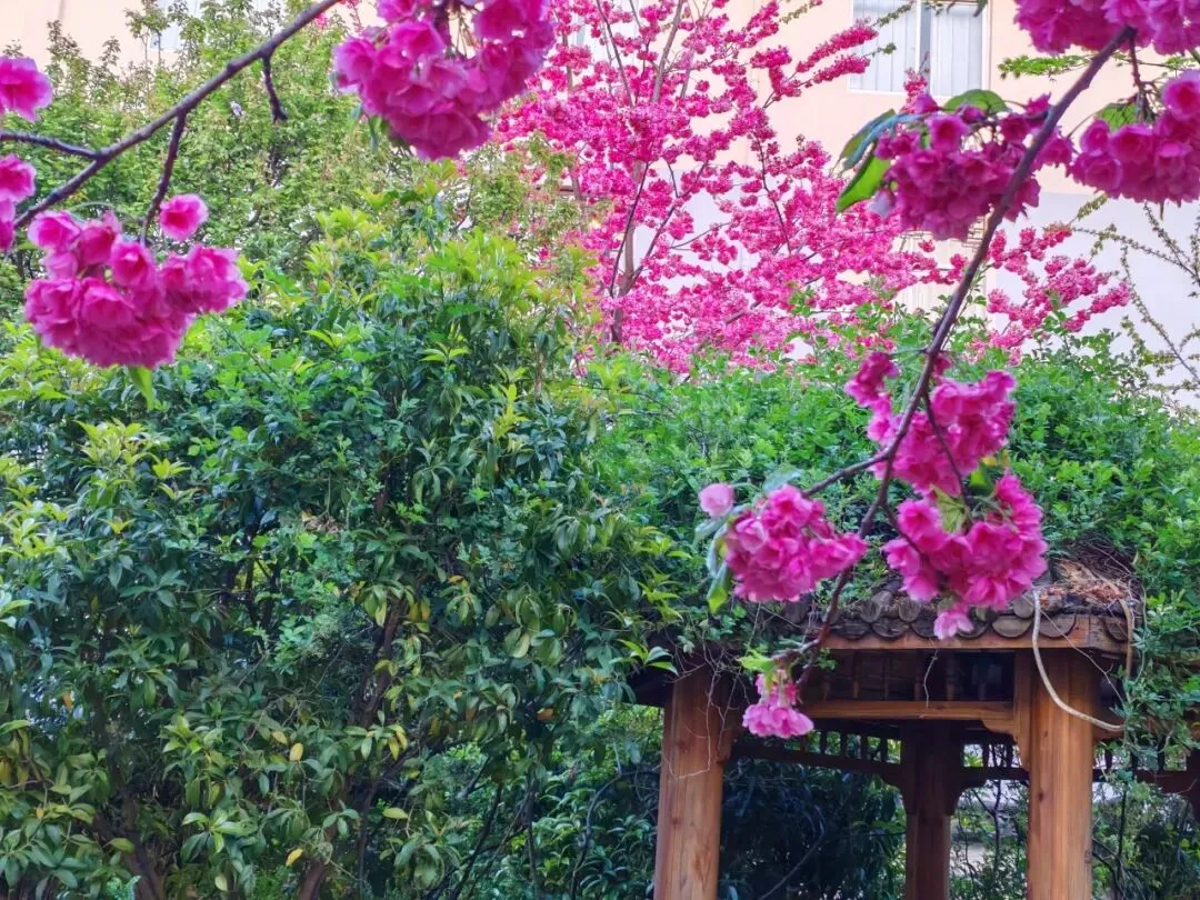 酒店楼下的花。丽江随处可见的一团团一簇簇的重瓣樱花。