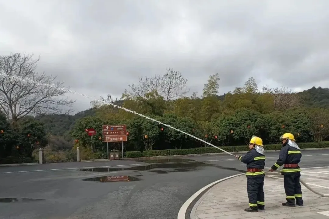 景区义务消防队同步开展消防应急演练,提升快速反应和协同处置能力,确保突发火情时能够快速响应、高效处置,全力保障游客人身安全和景区财产安全。