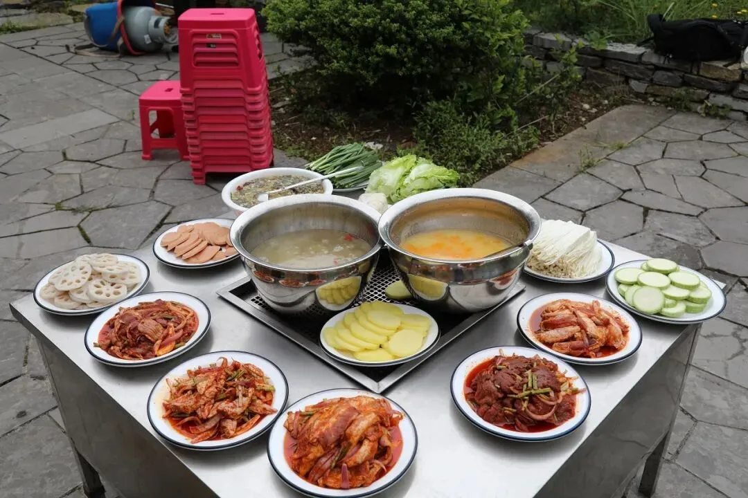 3. 聚会爆款·6-8人套餐仅388元,柴火鸡+烧烤+客房一站式配齐,6斤生态鸡肉+大份蔬菜拼盘、烧烤11种(5荤6素)、2L饮料(橙汁/雪碧/可乐)+10瓶矿泉水、酸汤饭、银耳粥、全套佐料,朋友聚会、家庭出游超划算。
