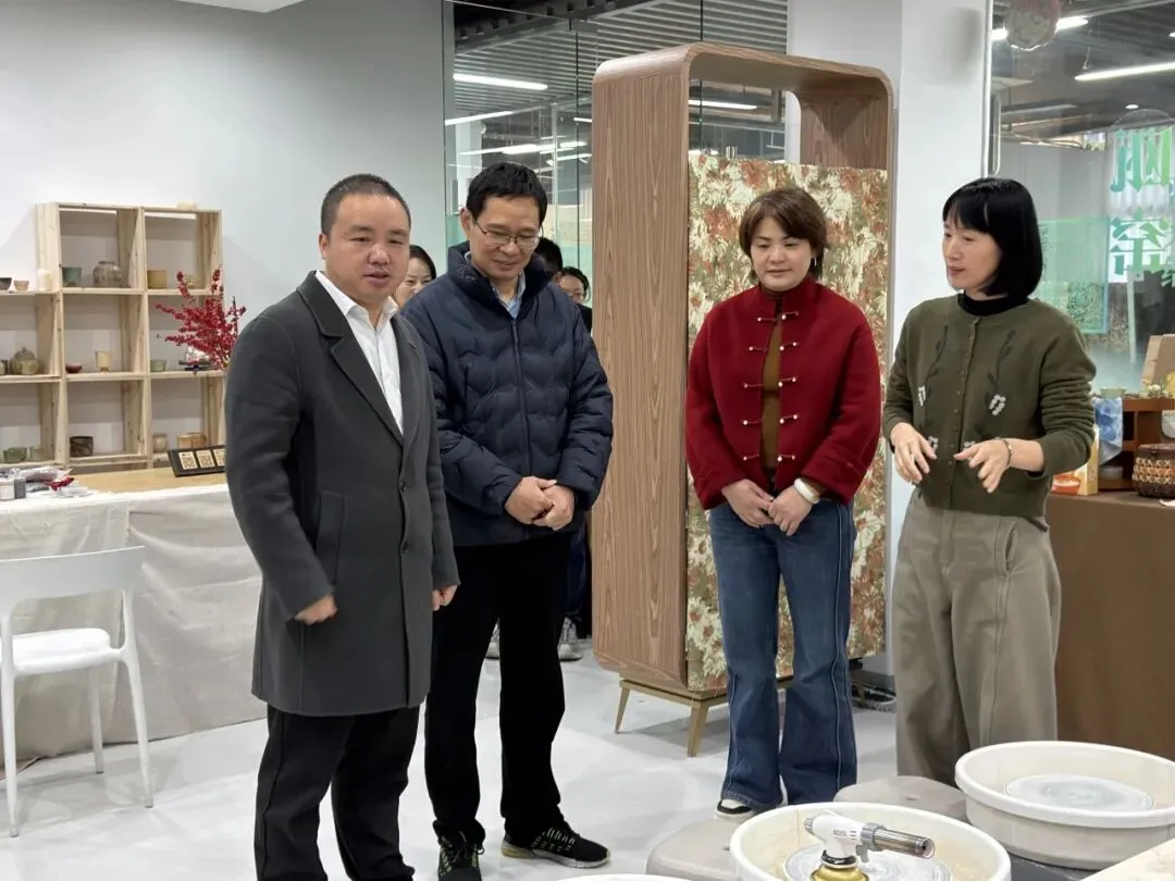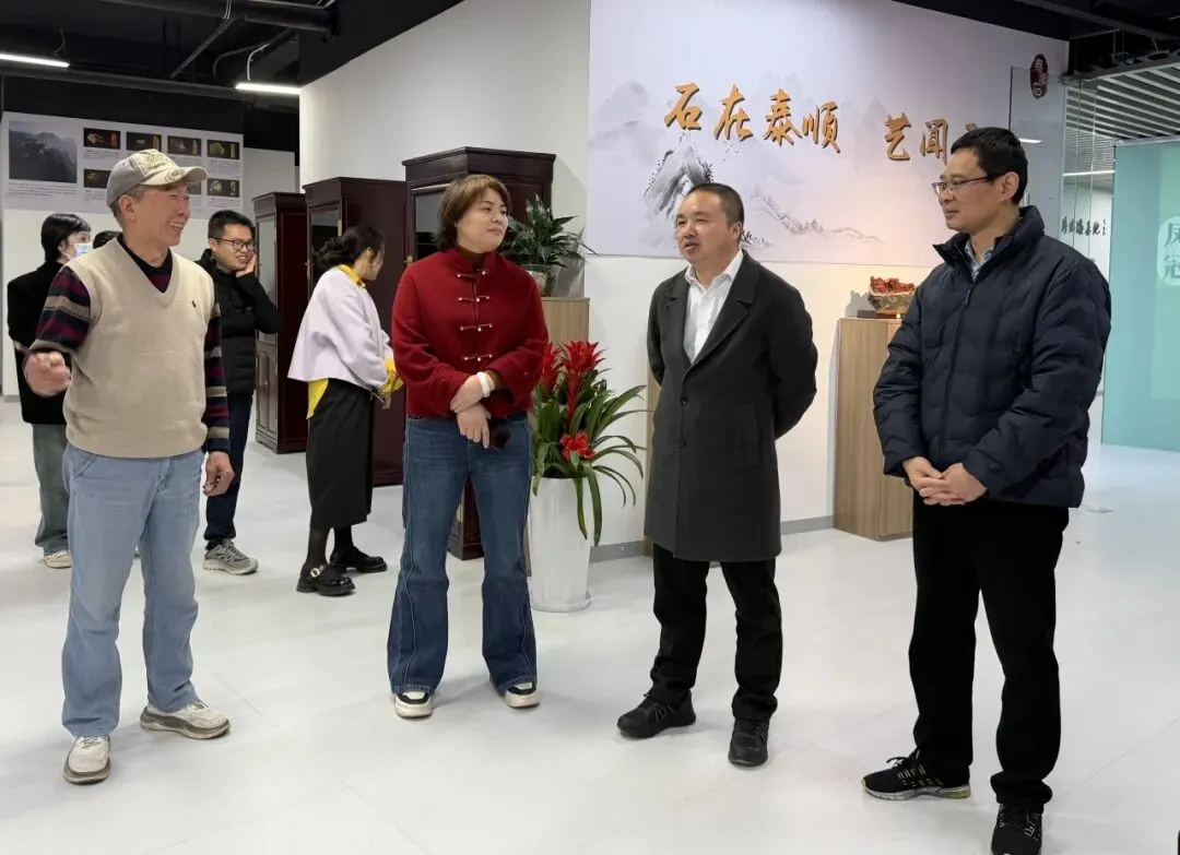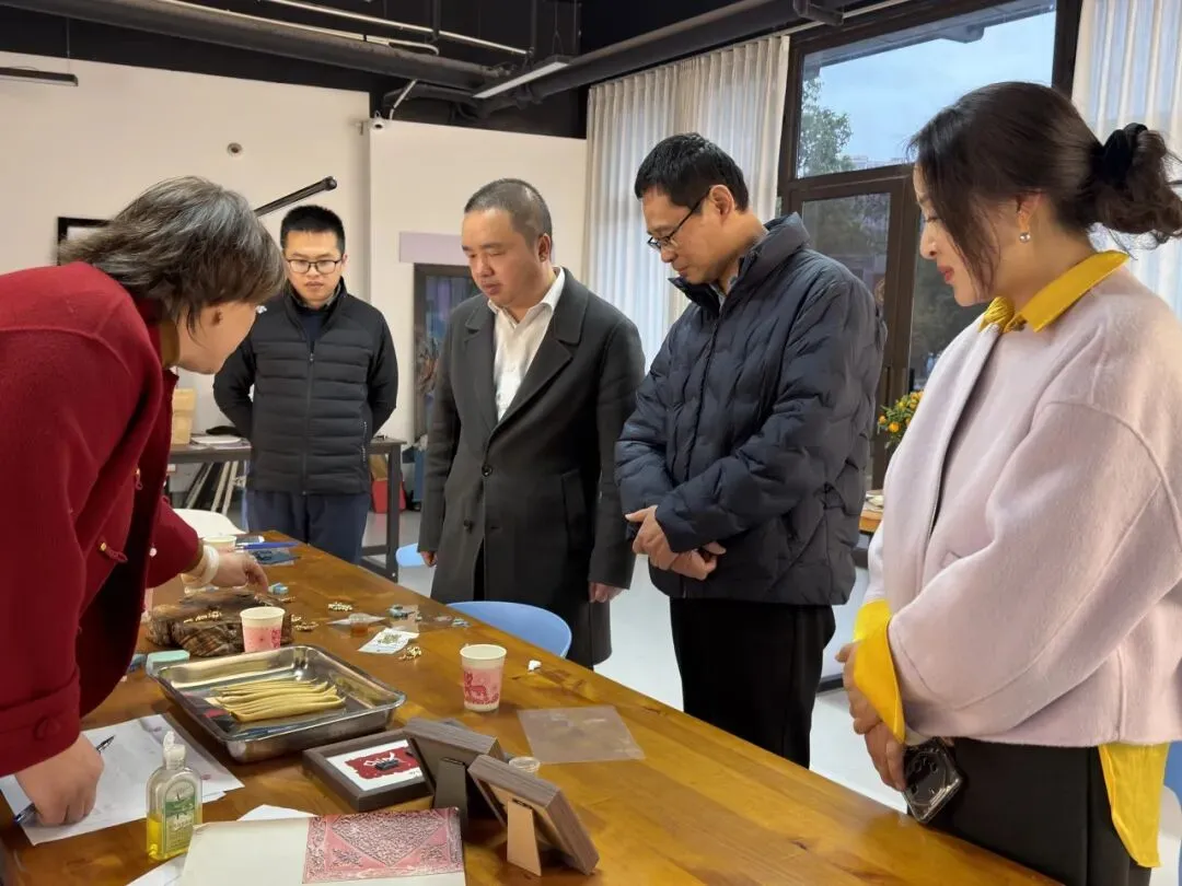 2026年3月4日下午,鹿城区文化广电旅游体育局局长马绍兴在副局长邵勤央、南郊街道宣传委员周亮等陪同下赴温州市工艺美术人才鹿城孵化中心开展实地调研。温州市工艺美术研究院副院长夏建勇,孵化中心副主任、温州市艺承工艺美术有限公司总经理陈晓陪同调研并作工作汇报。