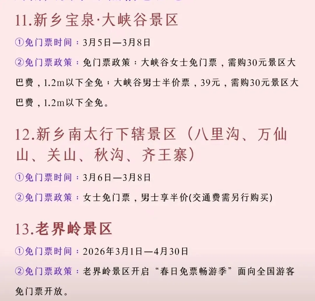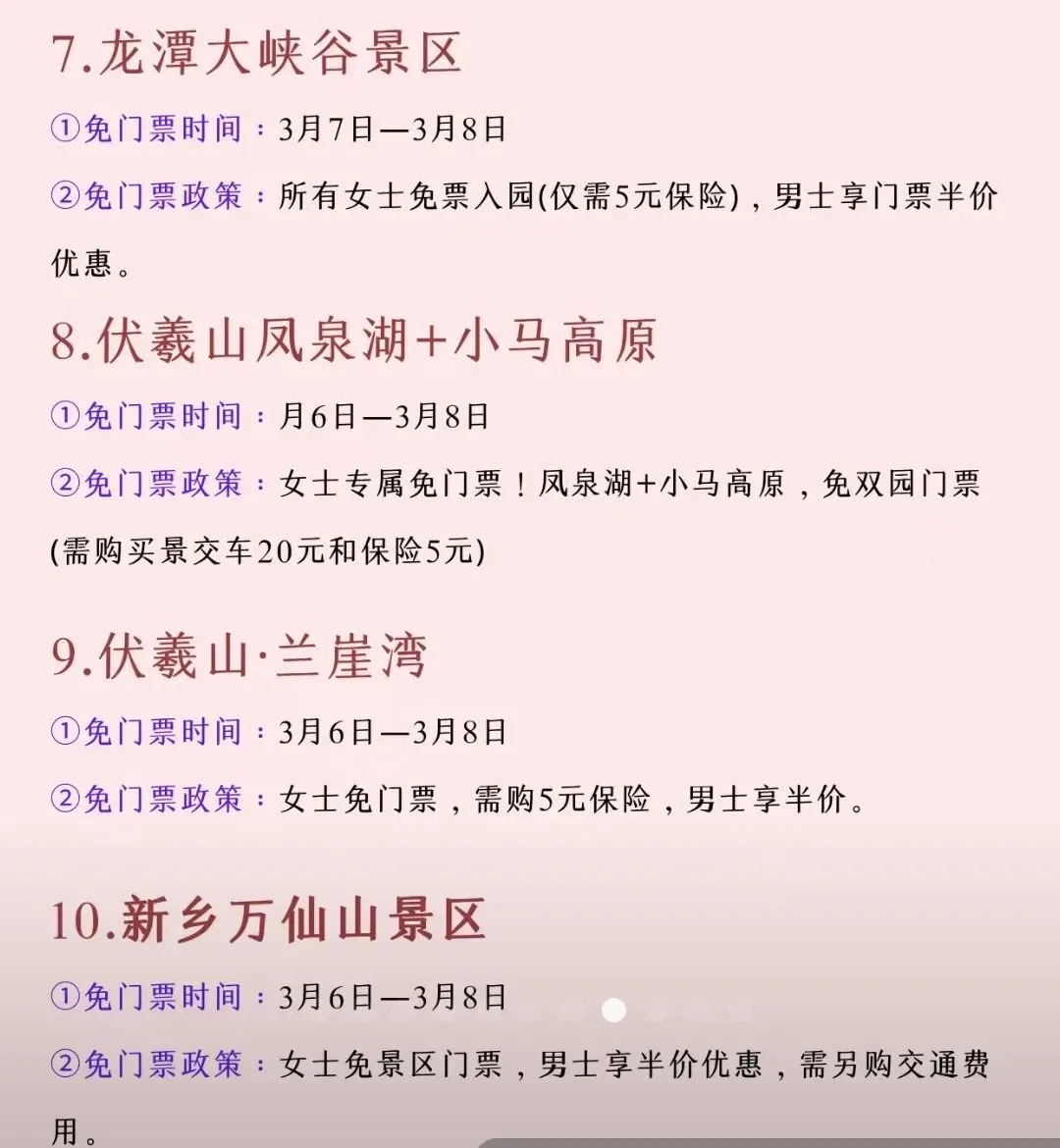 河南妇女节景点优惠信息到啦~