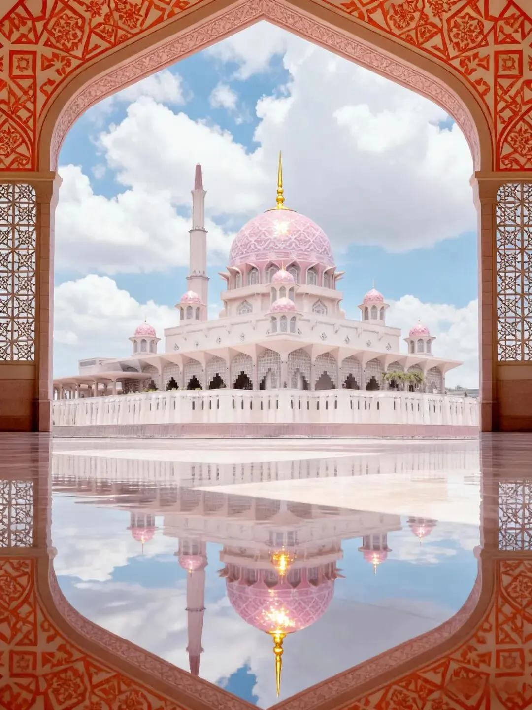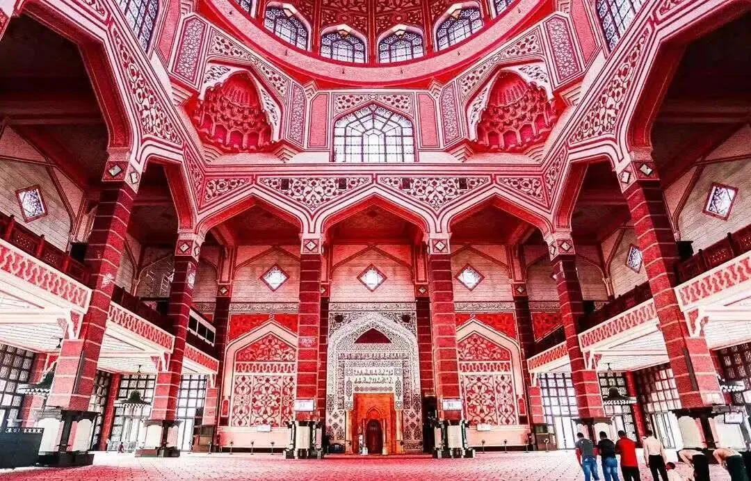 粉红清真寺:这大概是世界上最少女心的清真寺,建在水上,粉色的圆顶在蓝天白云下超级梦幻。