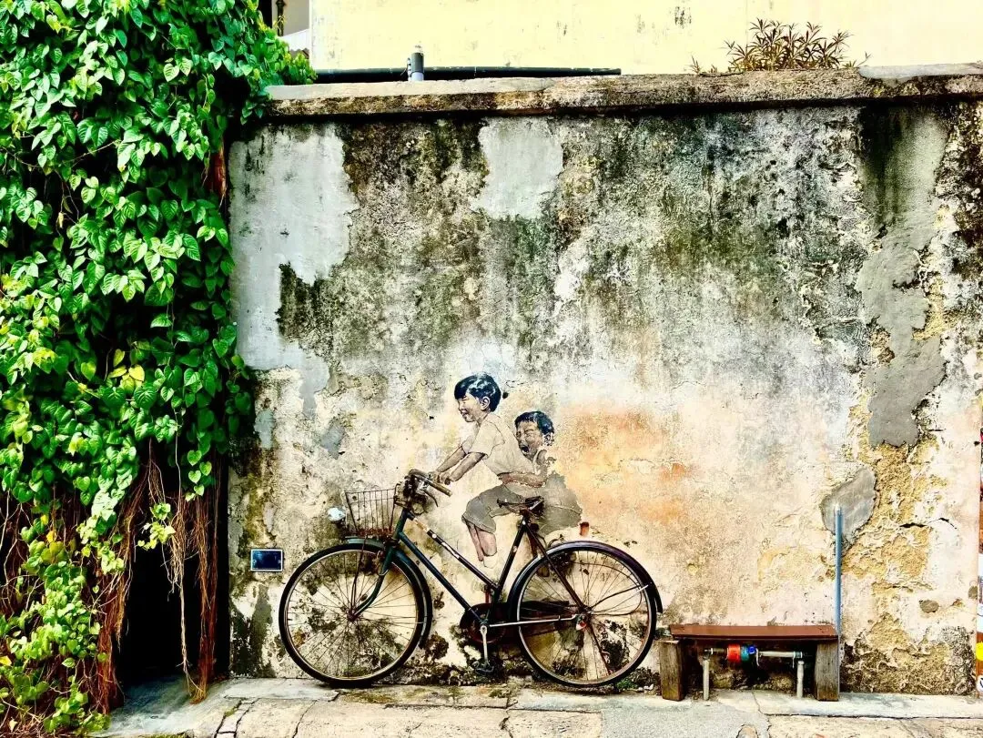 乔治市街头艺术:租辆单车穿梭在老街巷,寻找“姐弟共骑”等壁画,每个转角都有惊喜。