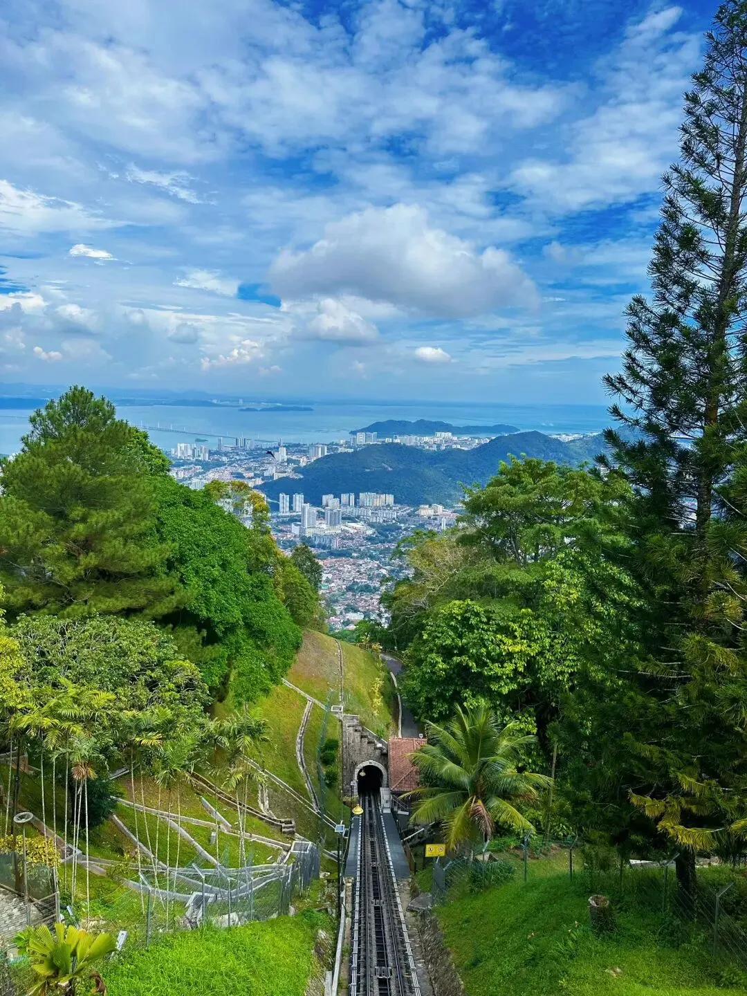 升旗山°:坐缆车登顶俯瞰整个槟城全景,傍晚时分看城市灯火亮起,浪漫满分。