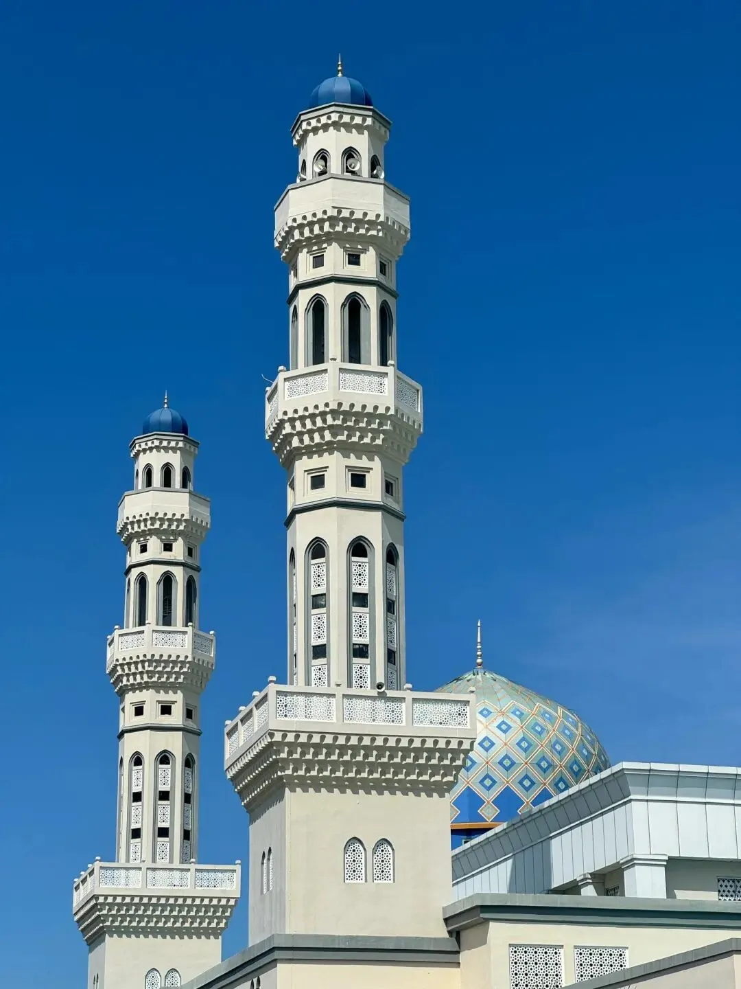 水上清真寺°:蓝色的圆顶倒映在湖水中,仿佛漂浮在水面,拍照自带清冷的高级感。