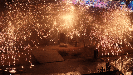 非遗打铁花 在夜空下一次次绽放 水战炮火的硝烟滚滚升空 任何一幕都值得被记录 值得去细心观赏