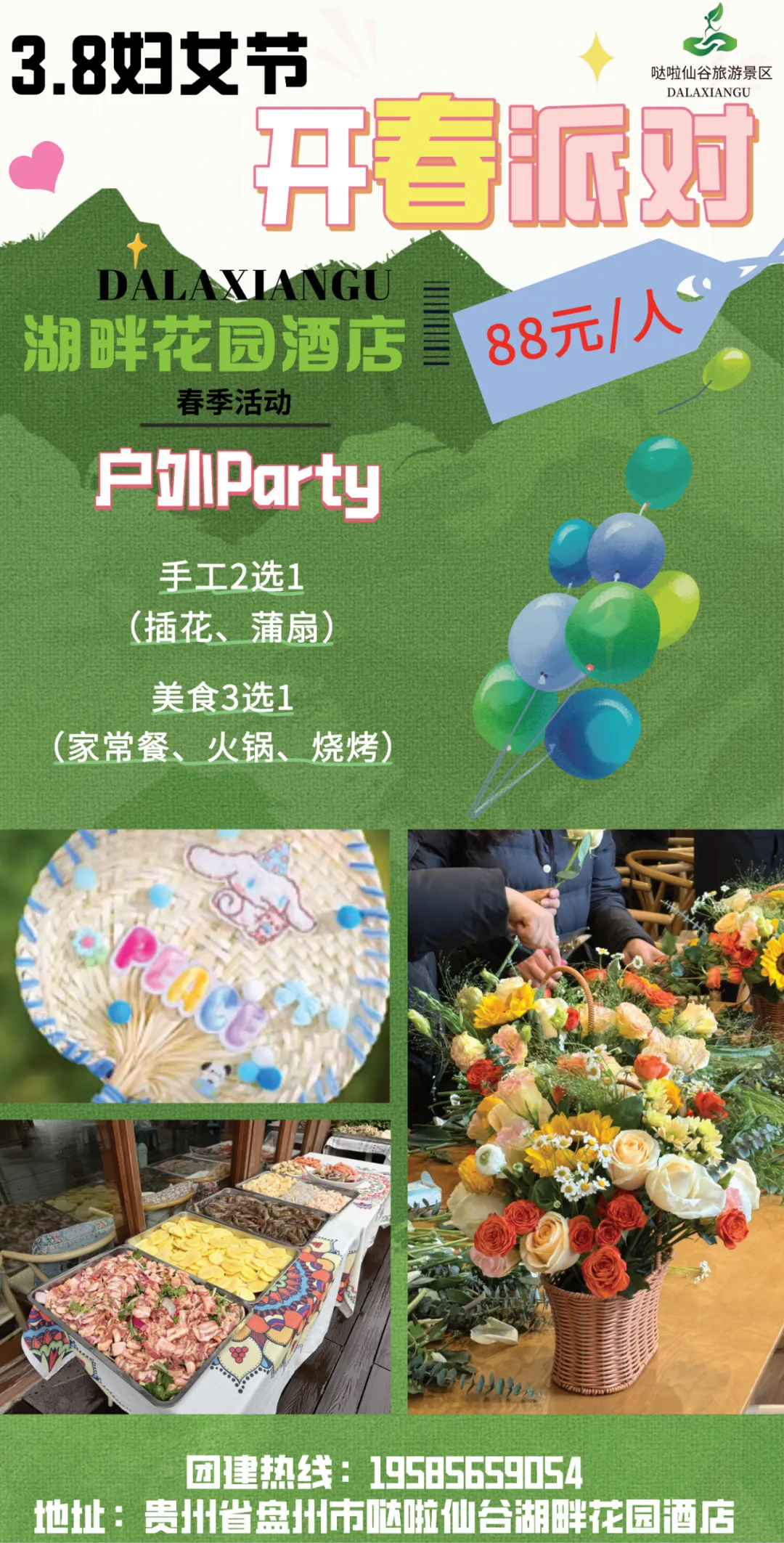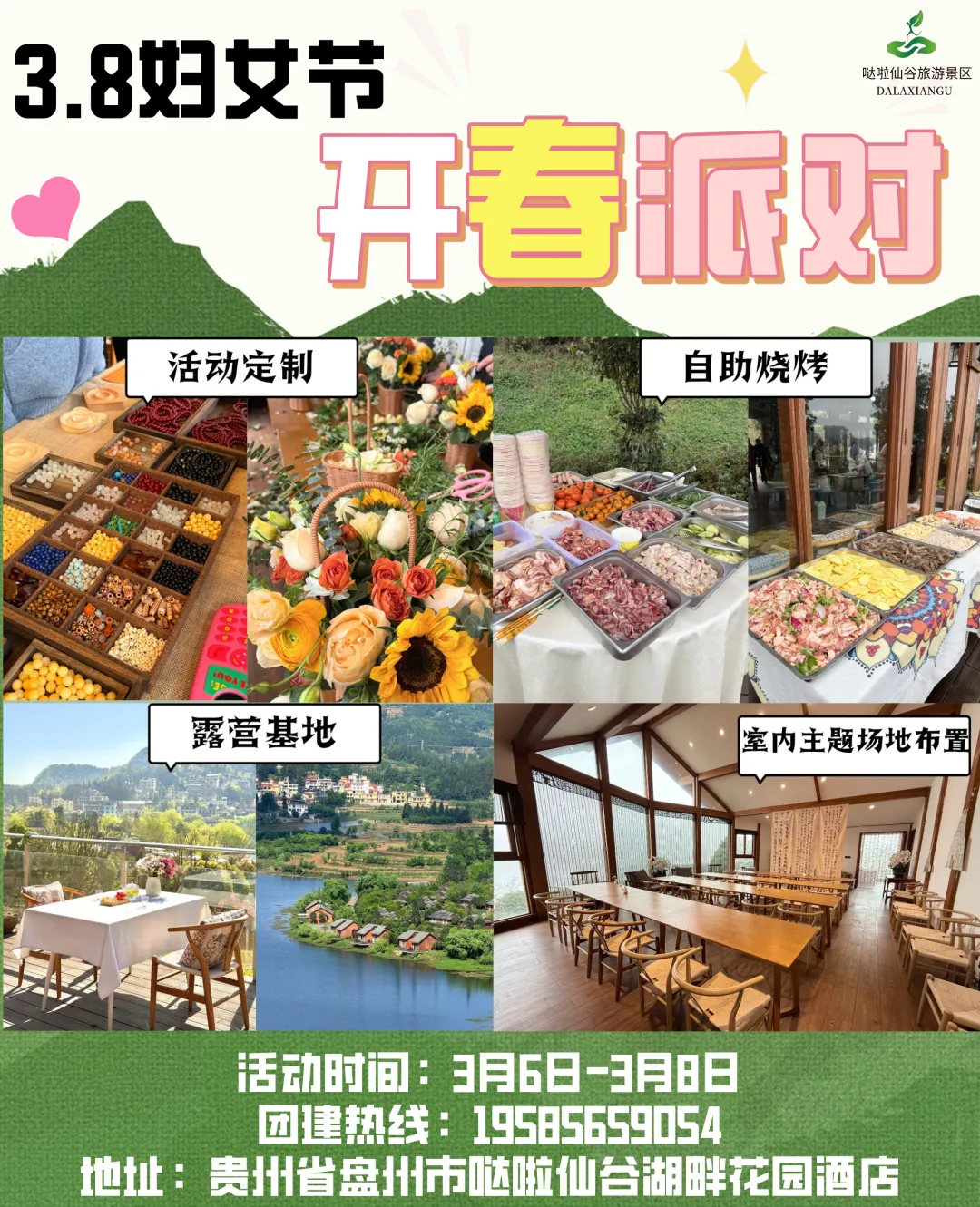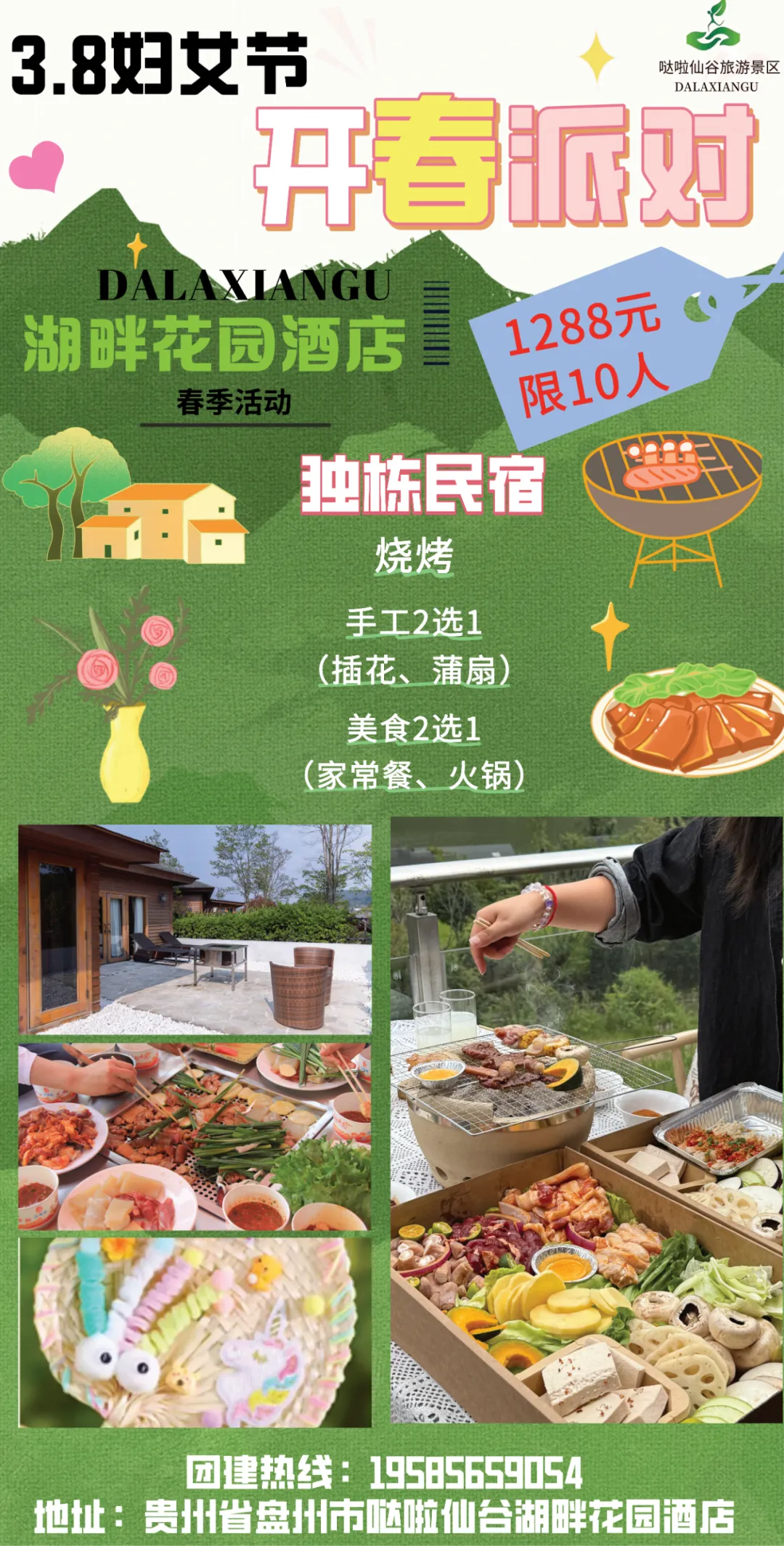 【盘州旅游】3.8妇女节开春派对~来哒啦仙谷湖畔花园酒店享春光