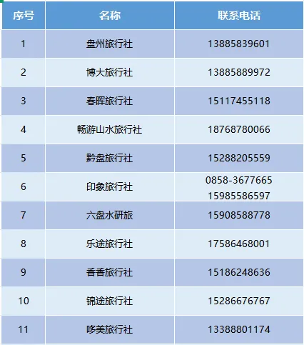 盘州市各景区 盘州市旅行社基本信息