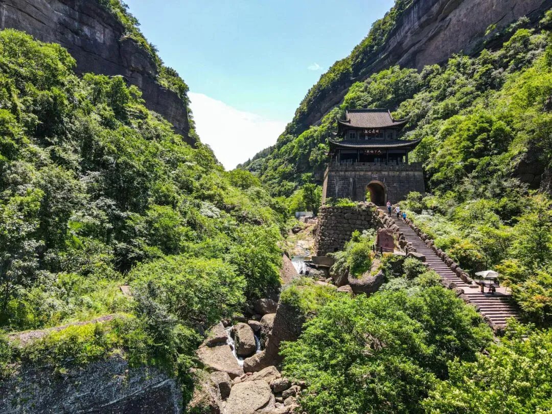 南门进→关楼→仙云集市→一线天→仙女廊→鸟道→梁山寺→索道下山→北门出