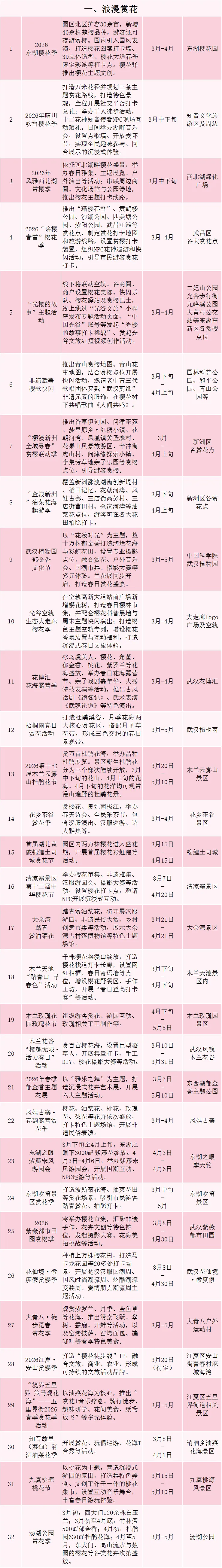 主要包括2026“相约春天赏樱花”经贸洽谈暨世界500强对话湖北、“智汇江城 创享同行”武汉都市圈产业生态专题推介会等41场活动。