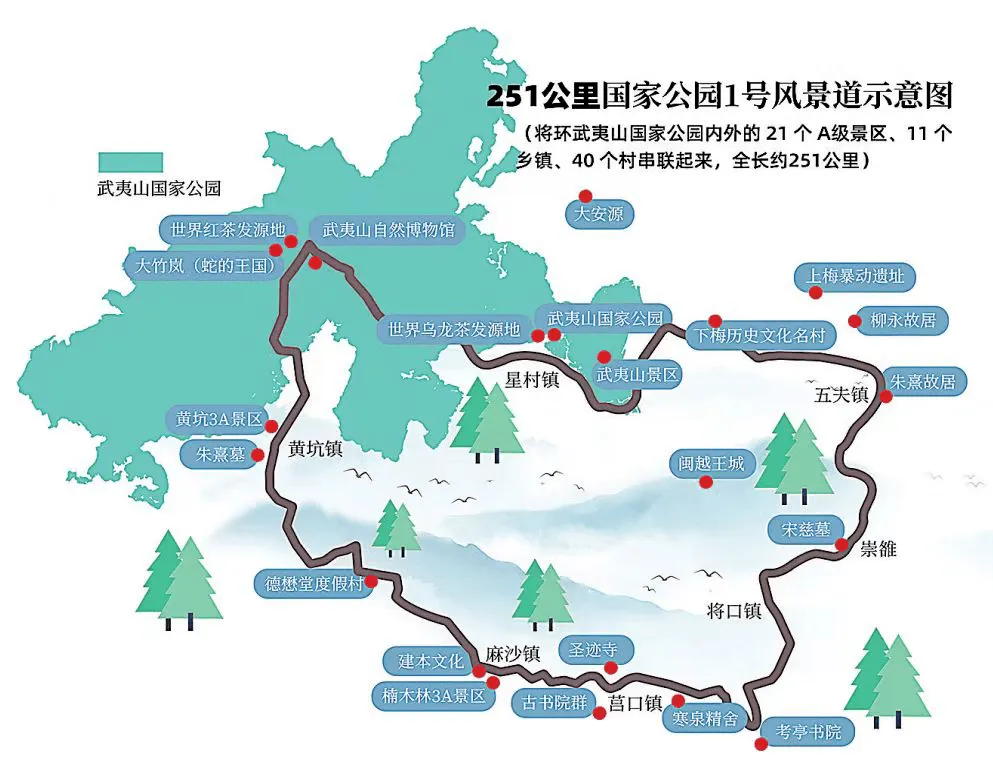 武夷山1号风景道适合自驾,全长251公里,被称为中国最值得去的自驾公路之一。