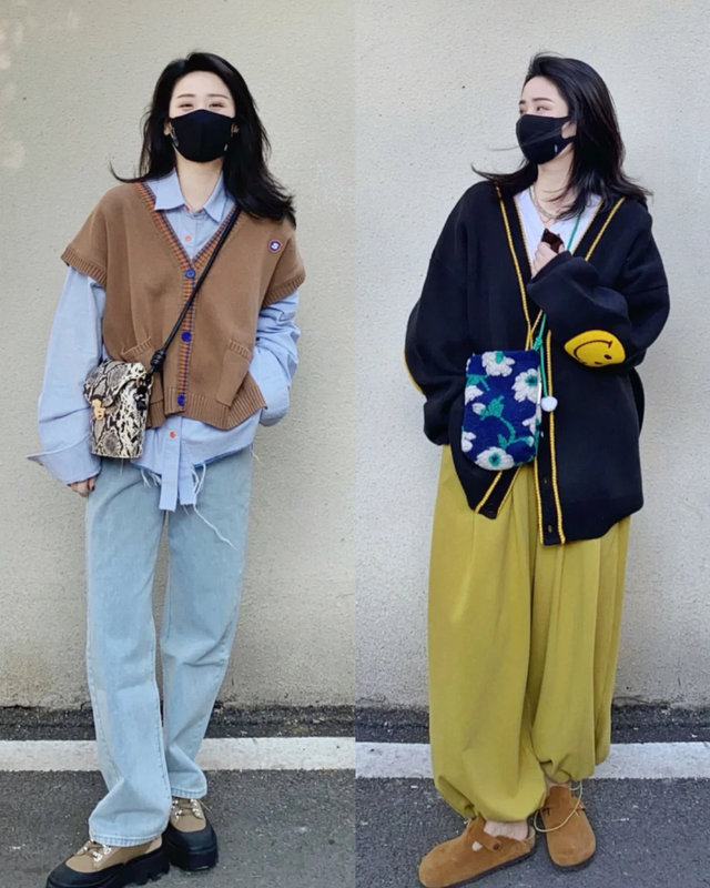 奶奶衫也就是毛衣开衫,喜欢宽松一些的奶奶衫,更加休闲舒服,如果单穿的话,就真的像奶奶穿的了,我们可以在里面叠穿白T或是衬衫,这样立马就变得青春洋气起来了。