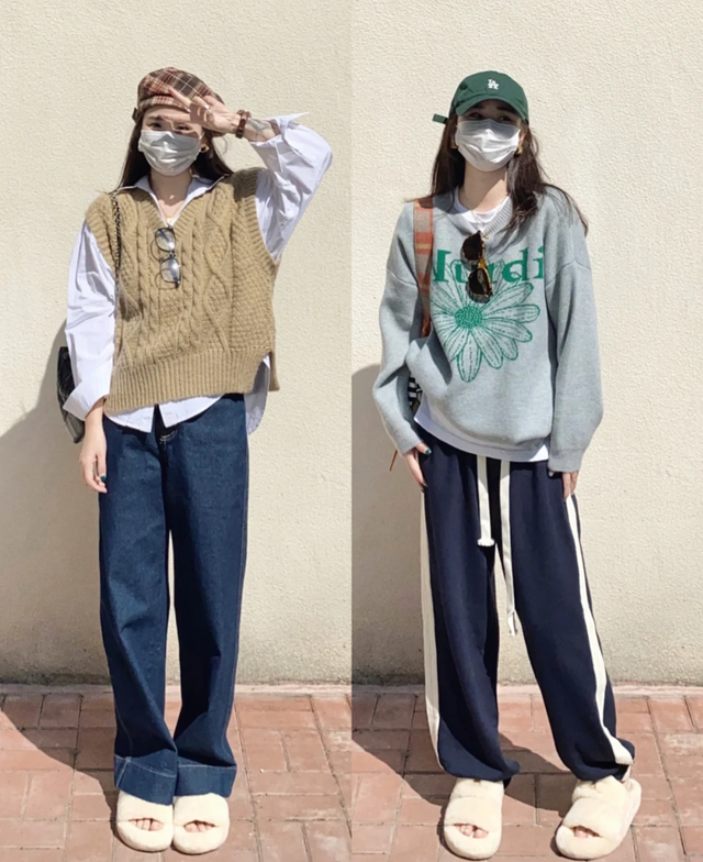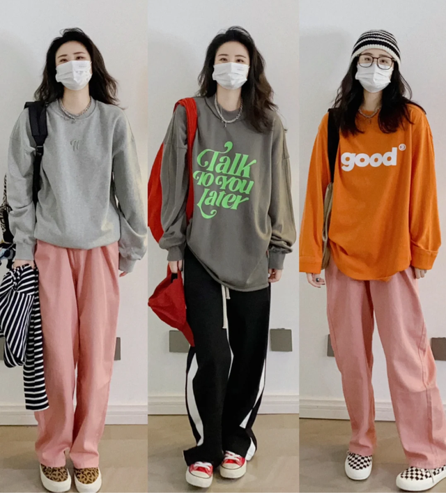 休闲阔腿裤遮肉显瘦,选择拖地高腰款,分分钟穿出大长腿来,搭配卫衣特别洋气。