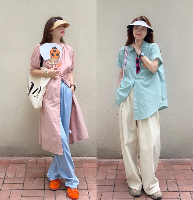 樱花粉风衣,就是春天的颜色,粉粉嫩嫩的又不俗气,搭配浅蓝色的牛仔阔腿裤,虽然撞色搭配,但是感觉却很洋气。水蓝色的廓形衬衫与白色的休闲裤搭配起来,是一种清爽帅气的感觉,也很好看。