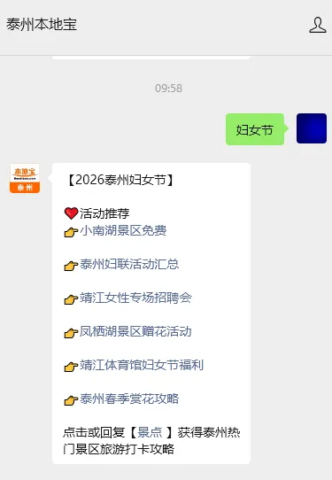即可获得泰州妇女节游玩攻略