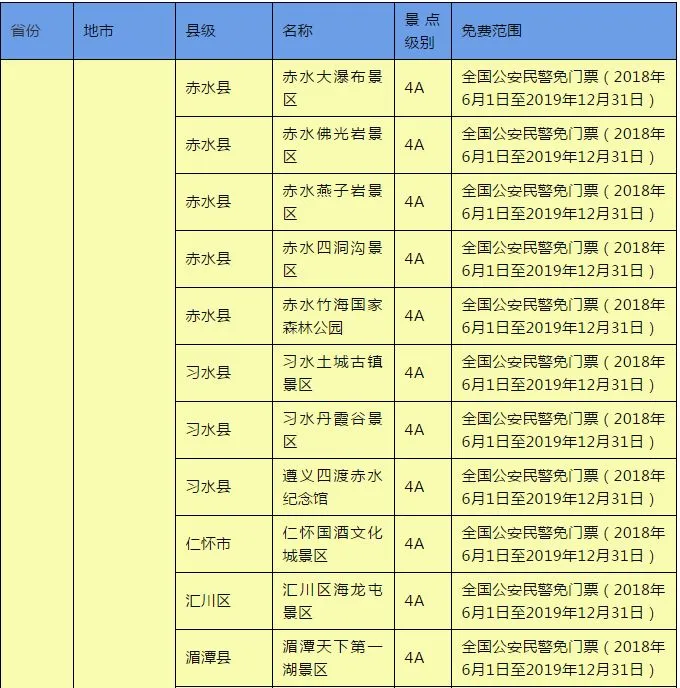 此外,四川省、吉林省、山东省、新疆维吾尔自治区、广西壮族自治区、福建省、内蒙古自治区、重庆市、湖南省等地的部分景点也已实行免票政策。