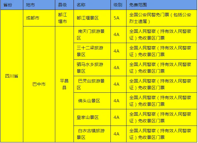 ✅ 二、这些省份有大量景区对全国警察免票