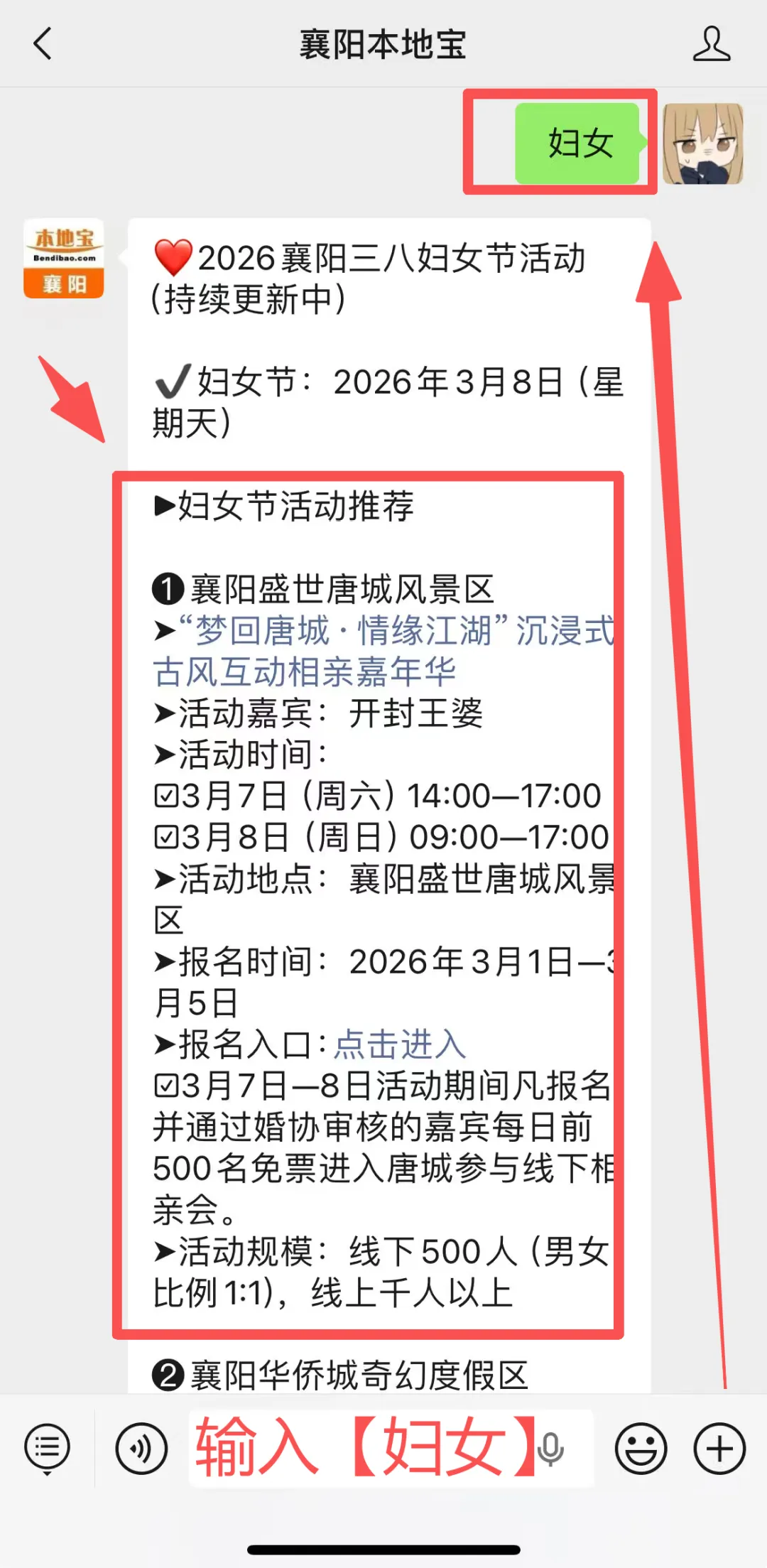 在【襄阳本地宝】微信对话框