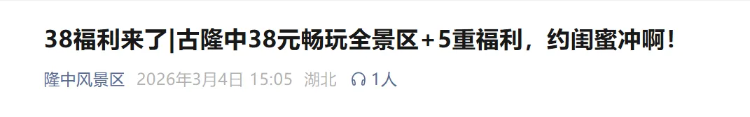 ✅优惠内容:所有女性38元畅玩全景区+5大福利。