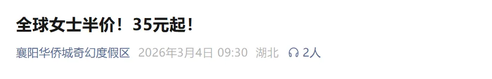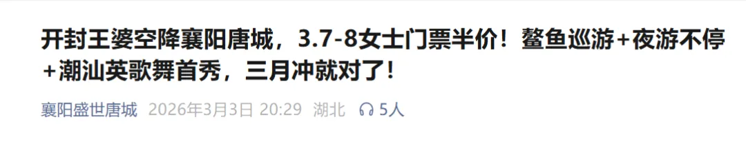 ▼ 点击阅读原文获取2026襄阳妇女节活动全攻略(医院健康福利活动+景区活动)!