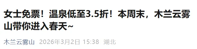 活动期间,女性游客凭本人身份证可免木兰云雾山景区大门票(原价65元/人),云雾山私汤温泉享3.5折特惠!
